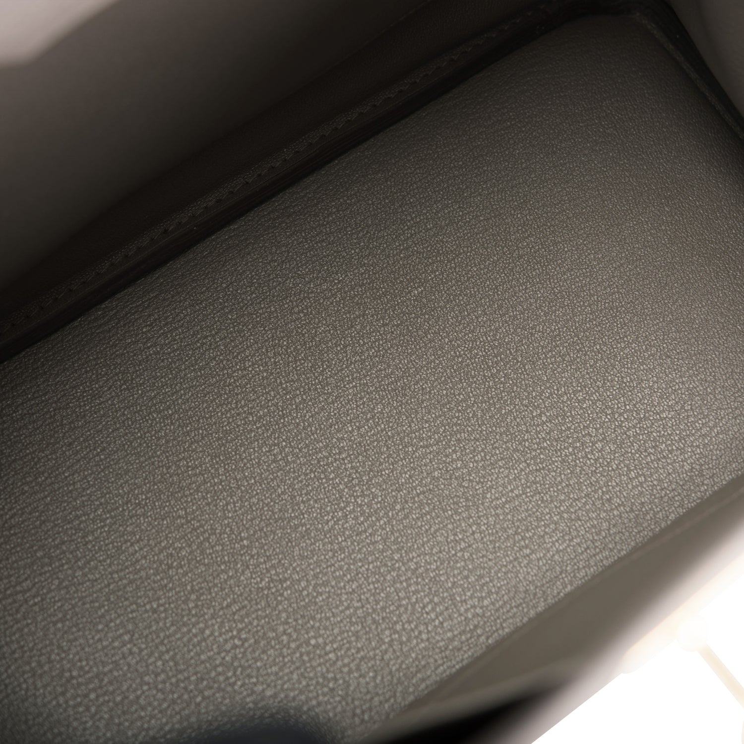 The interior is lined with Etain chevre and has one zip pocket with an Hermes engraved zipper pull and an open pocket on the opposite side.