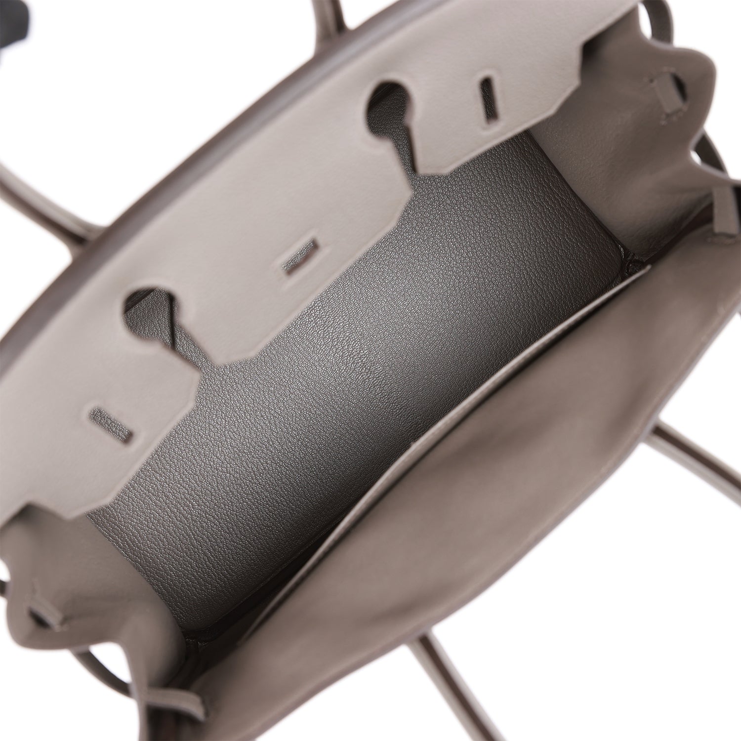 The interior is lined with Etain chevre and has one zip pocket with an Hermes engraved zipper pull and an open pocket on the opposite side.