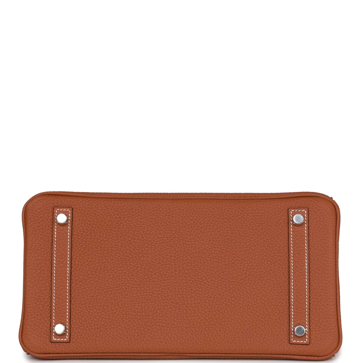 This Birkin is in Gold togo leather with palladium hardware and features contrast stitching, front flap, two straps with center toggle closure, a clochette with lock and two keys and double rolled handles.