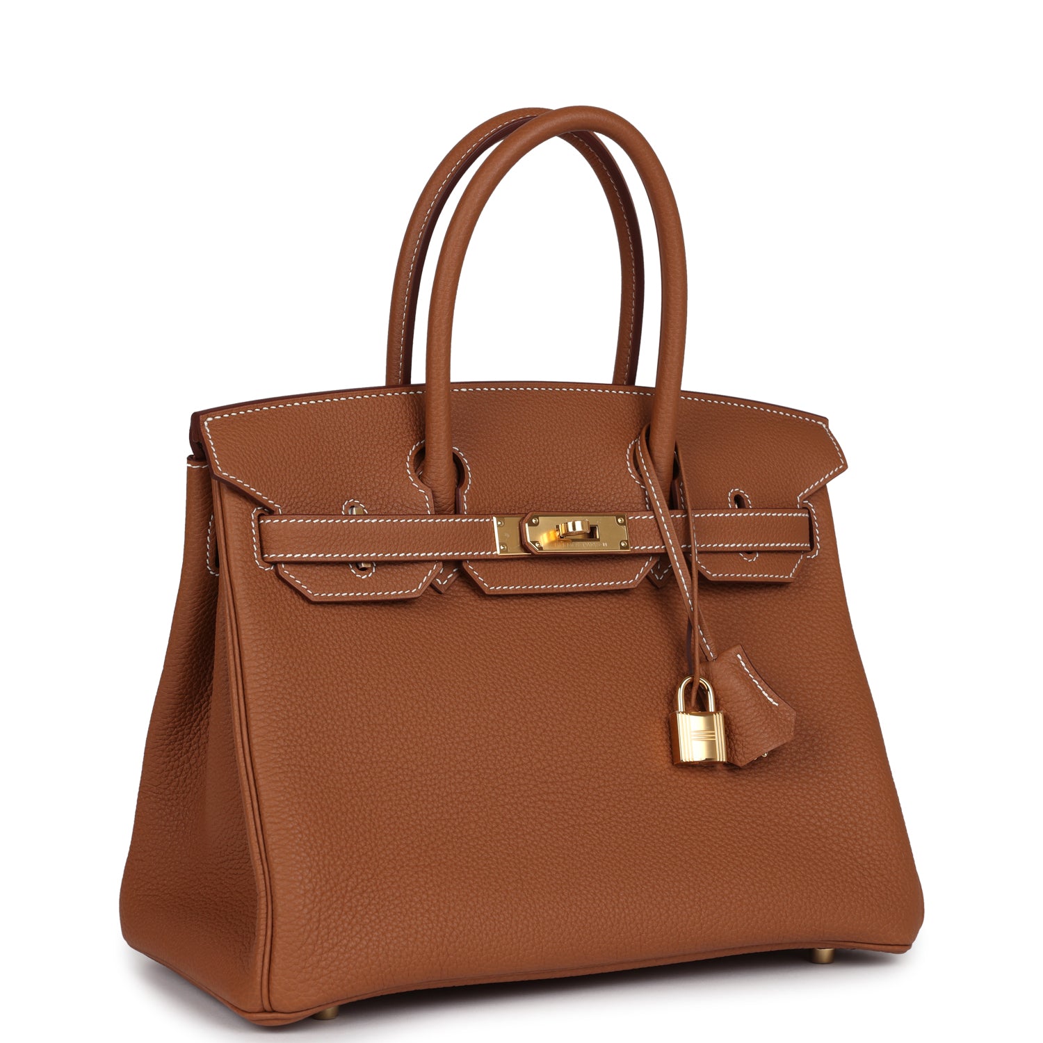 This Birkin is in Gold togo leather with gold hardware and has contrast stitching, front flap, two straps with center toggle closure, clochette with lock and two keys, and double rolled handles.