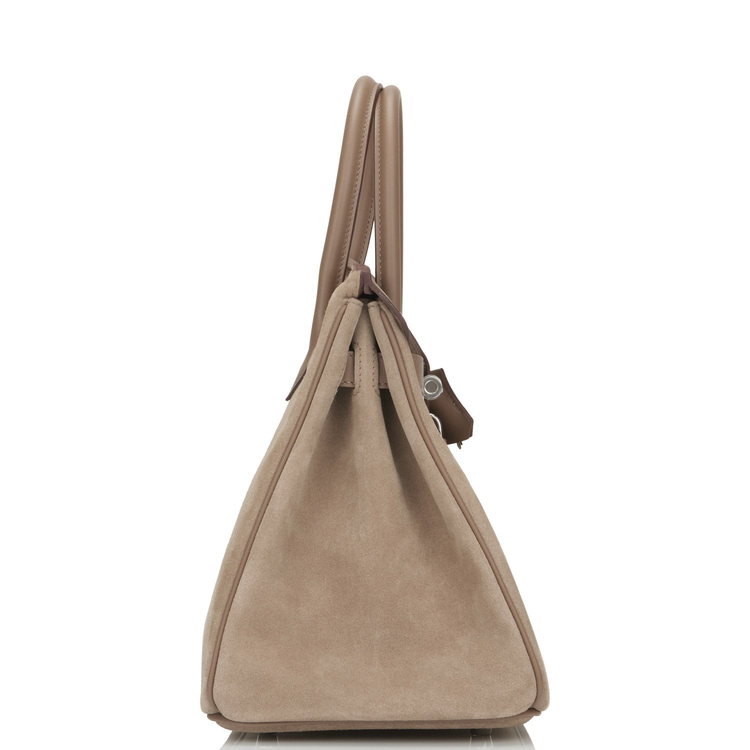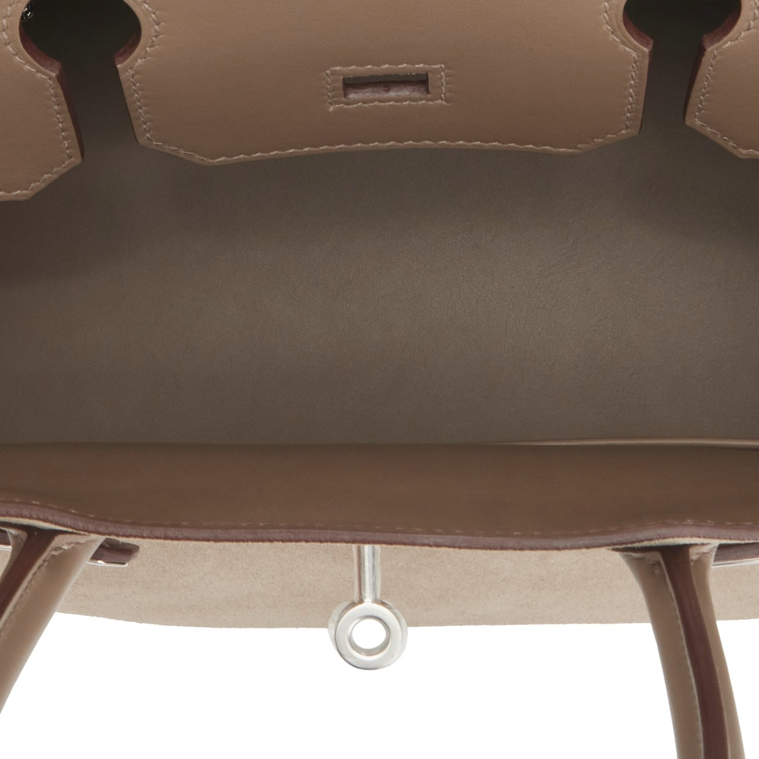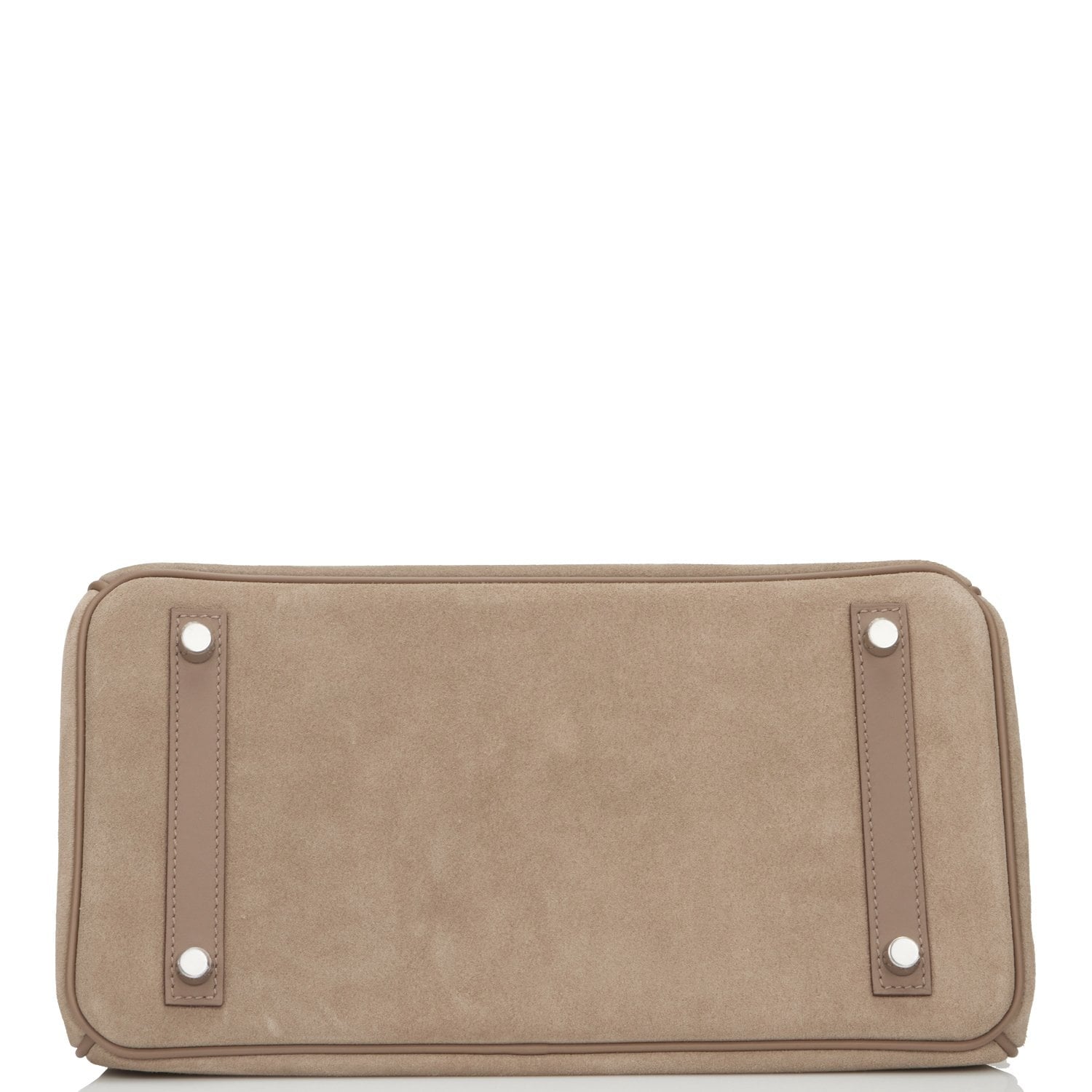 This Birkin is in Gris Caillou grizzly and swift leather with palladium hardware and has tonal stitching, front flap, two straps with center toggle closure, clochette with lock and two keys, and double rolled handles.
