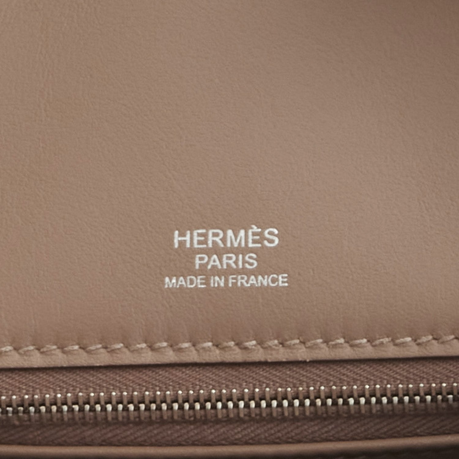 The interior is lined with Gris Caillou swift and has one zip pocket with an Hermes engraved zipper pull and an open pocket on the opposite side.