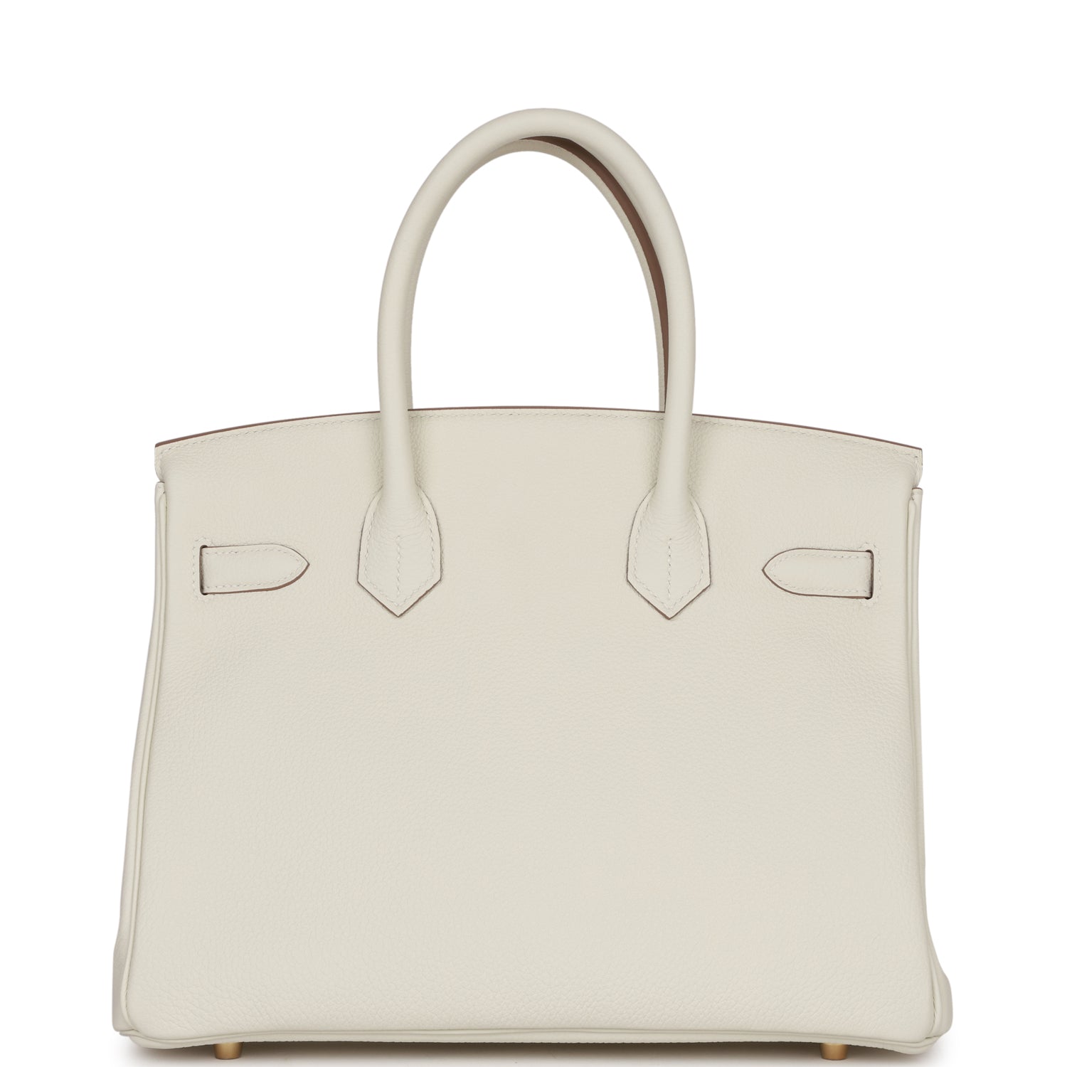 This Birkin is in Mushroom togo leather with gold hardware and has tonal stitching, front flap, two straps with center toggle closure, clochette with lock and two keys, and double rolled handles.