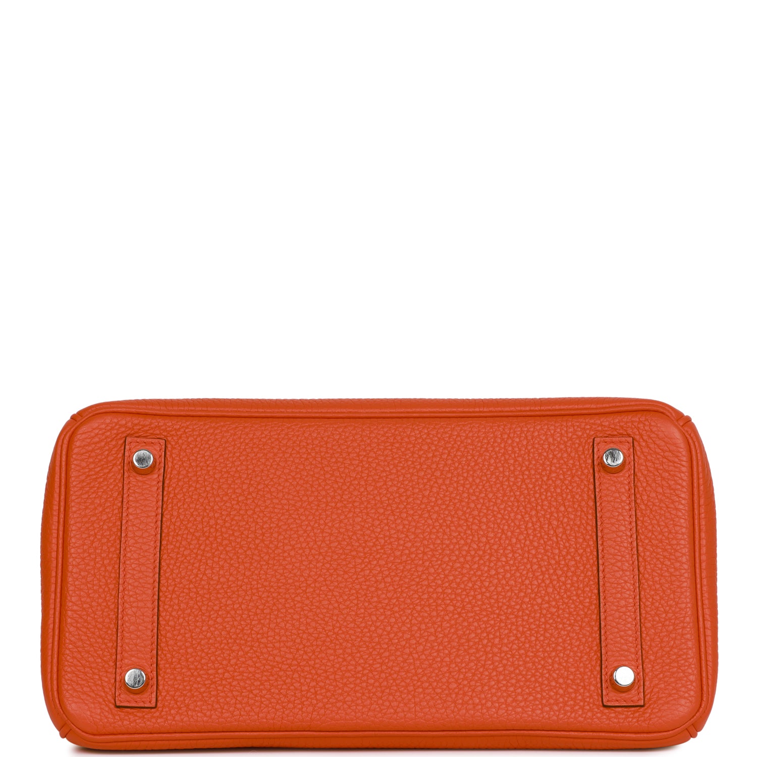 This Birkin is in Orange Poppy clemence leather with palladium hardware and has tonal stitching, a front toggle closure, a clochette with lock and two keys, and double rolled handles.