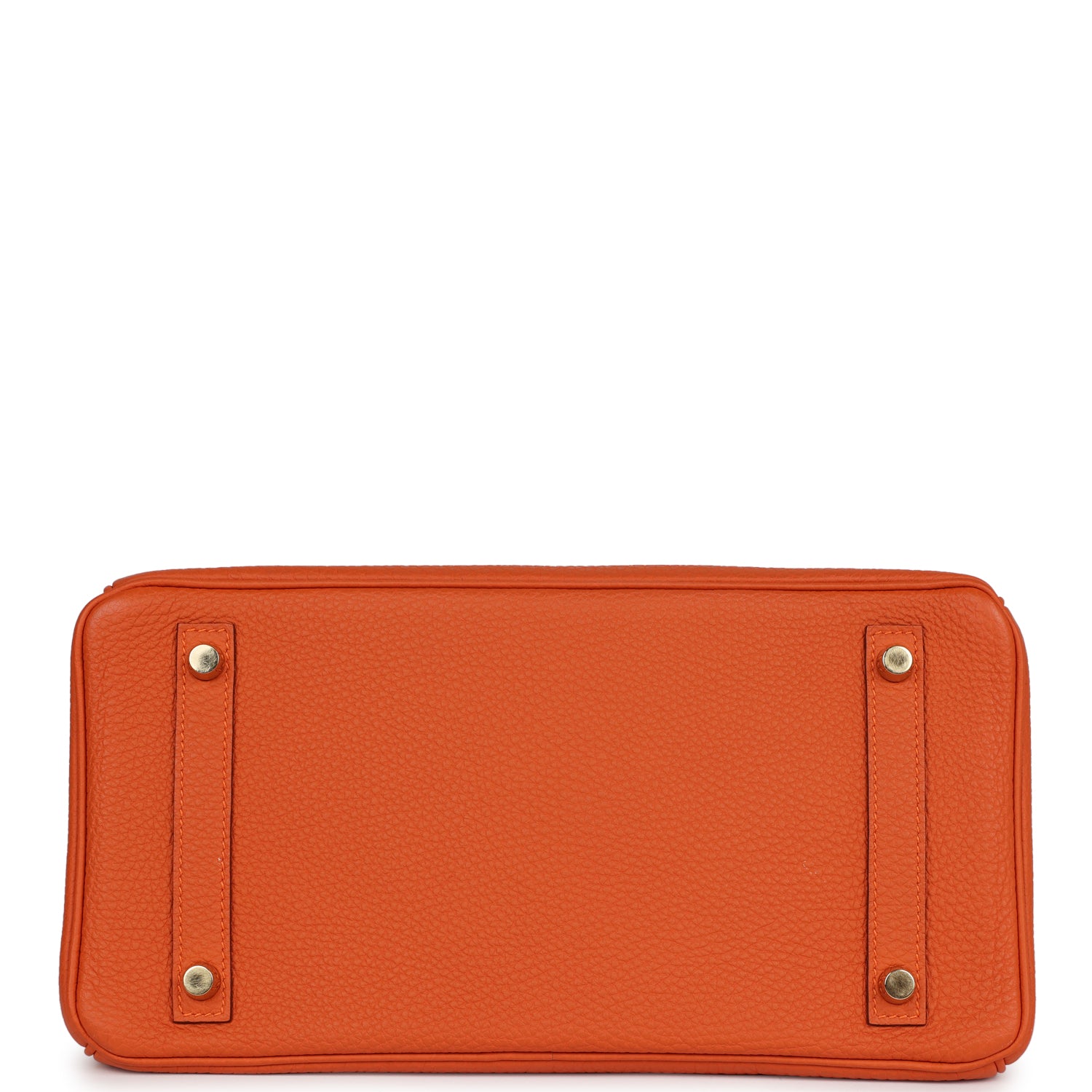 This Birkin is in Orange togo leather with gold hardware and has tonal stitching, front flap, two straps with center toggle closure, clochette with lock and two keys, and double rolled handles.