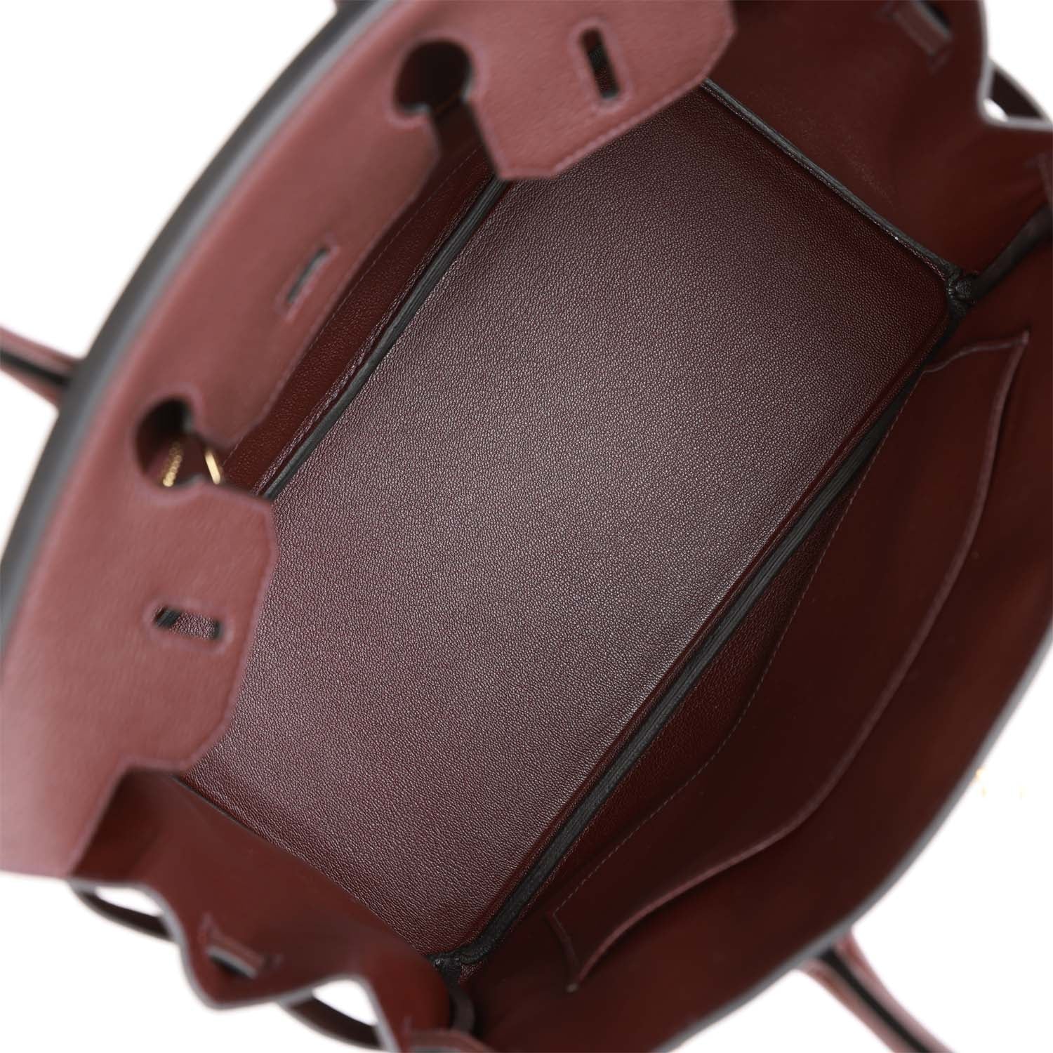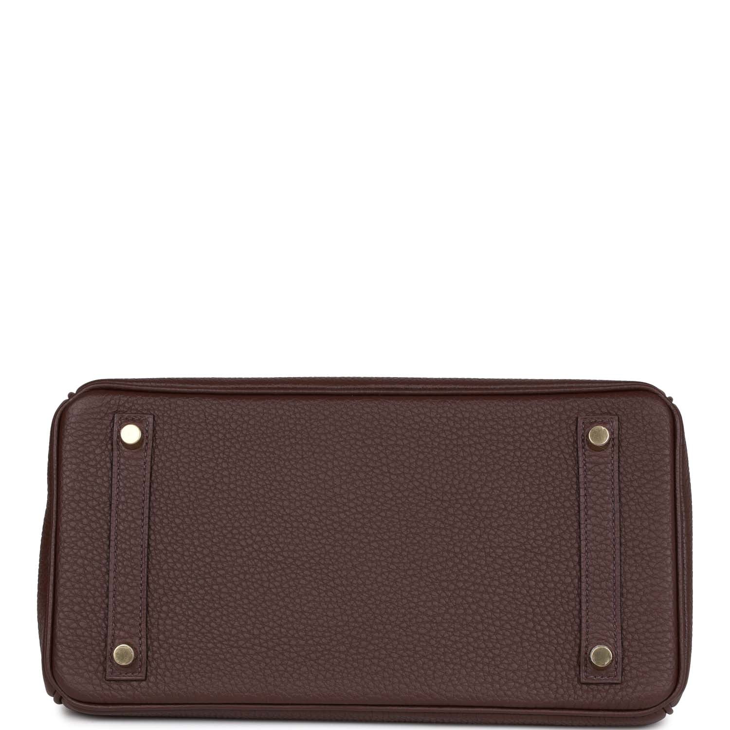 This Birkin is in Rouge Sellier togo leather with gold hardware and has tonal stitching, front flap, two straps with center toggle closure, clochette with lock and two keys, and double rolled handles.