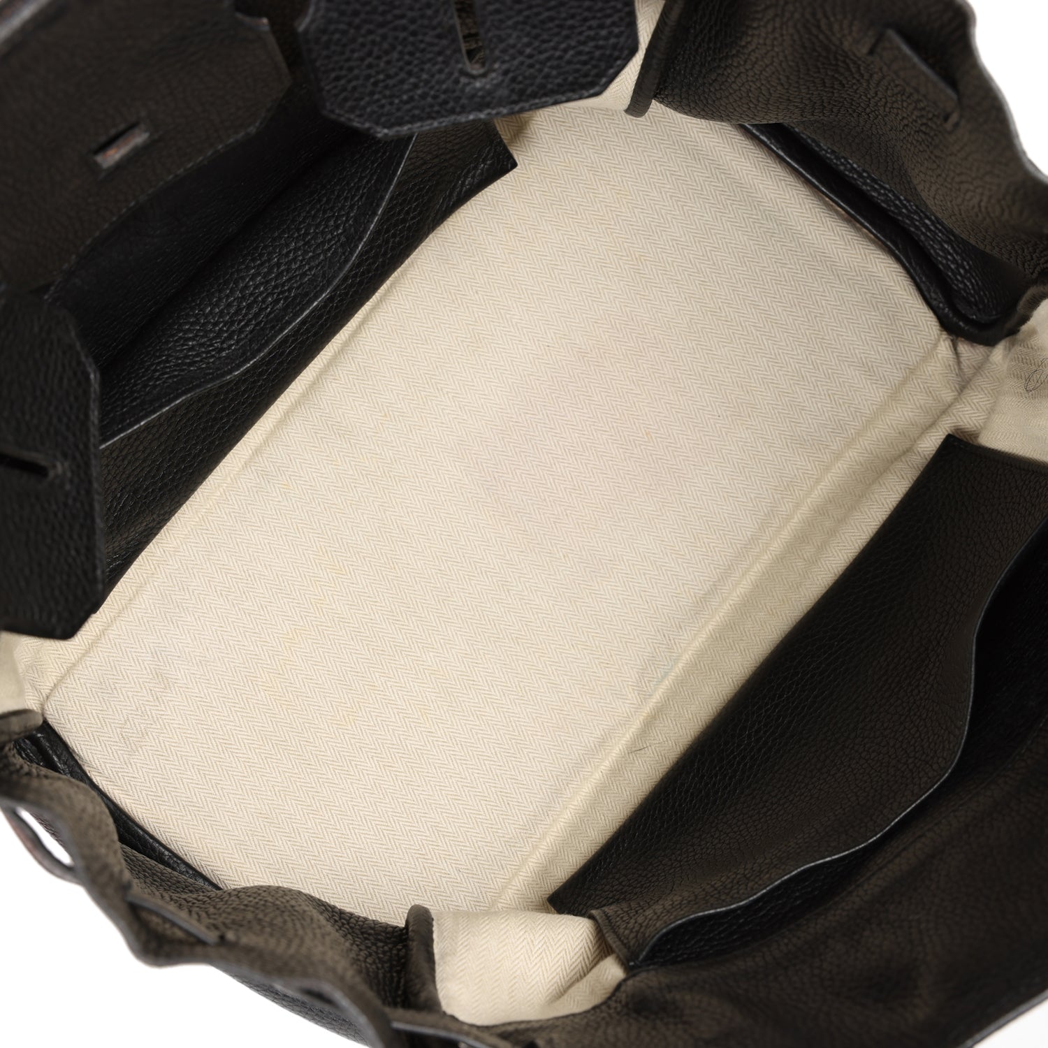 This Birkin is in black crinoline and clemence leather with palladium hardware and has tonal stitching, front flap, two straps with center toggle closure, clochette with lock and two keys, and double rolled handles.
