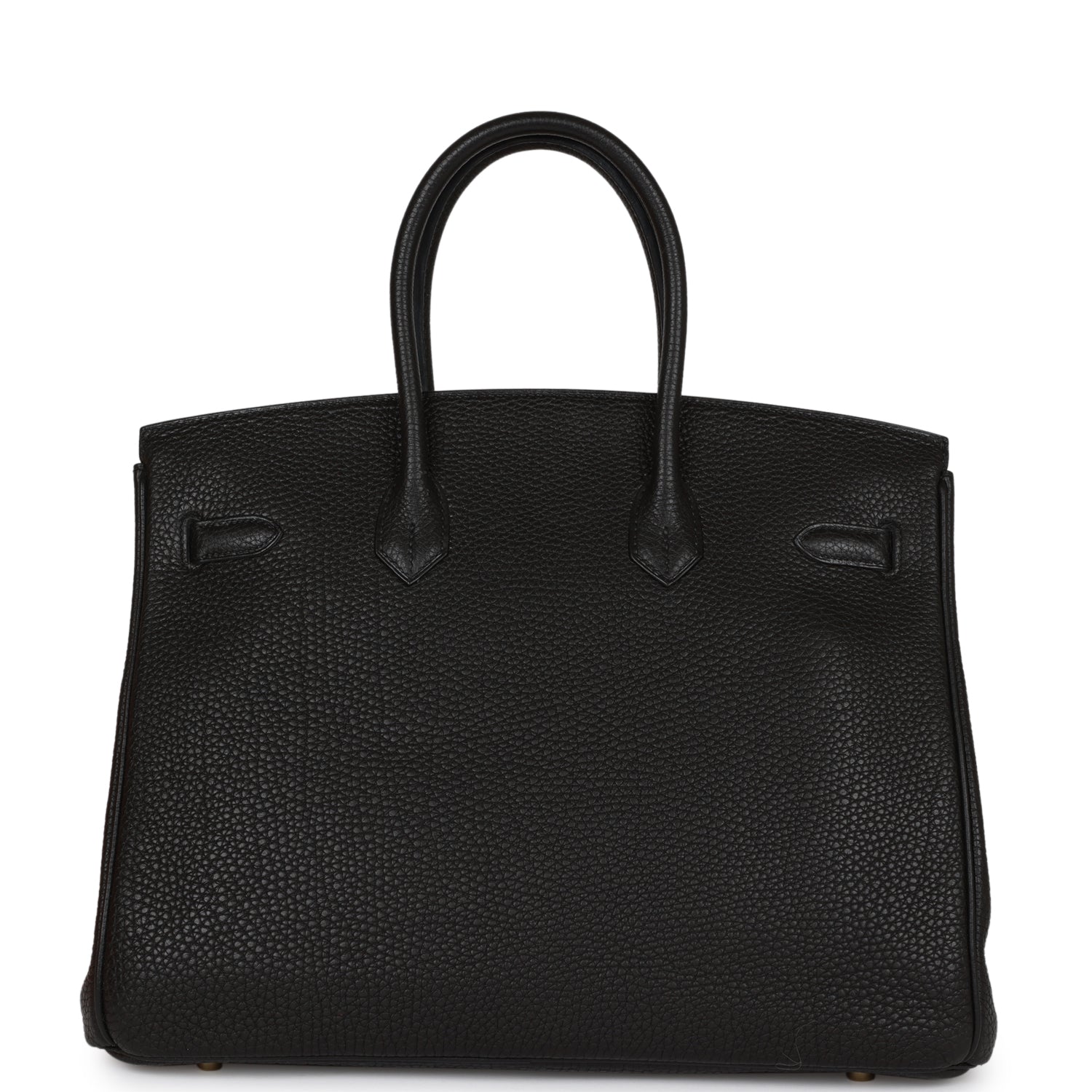 This Birkin is in black togo leather with gold hardware and has tonal stitching, front flap, two straps with center toggle closure, clochette with lock and two keys, and double rolled handles.