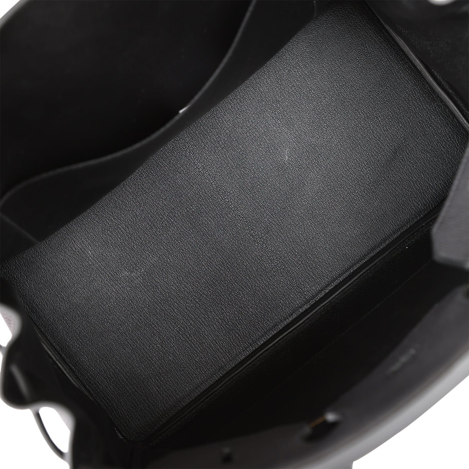 The interior is lined with black chevre and has one zip pocket with an Hermes engraved zipper pull and an open pocket on the opposite side.