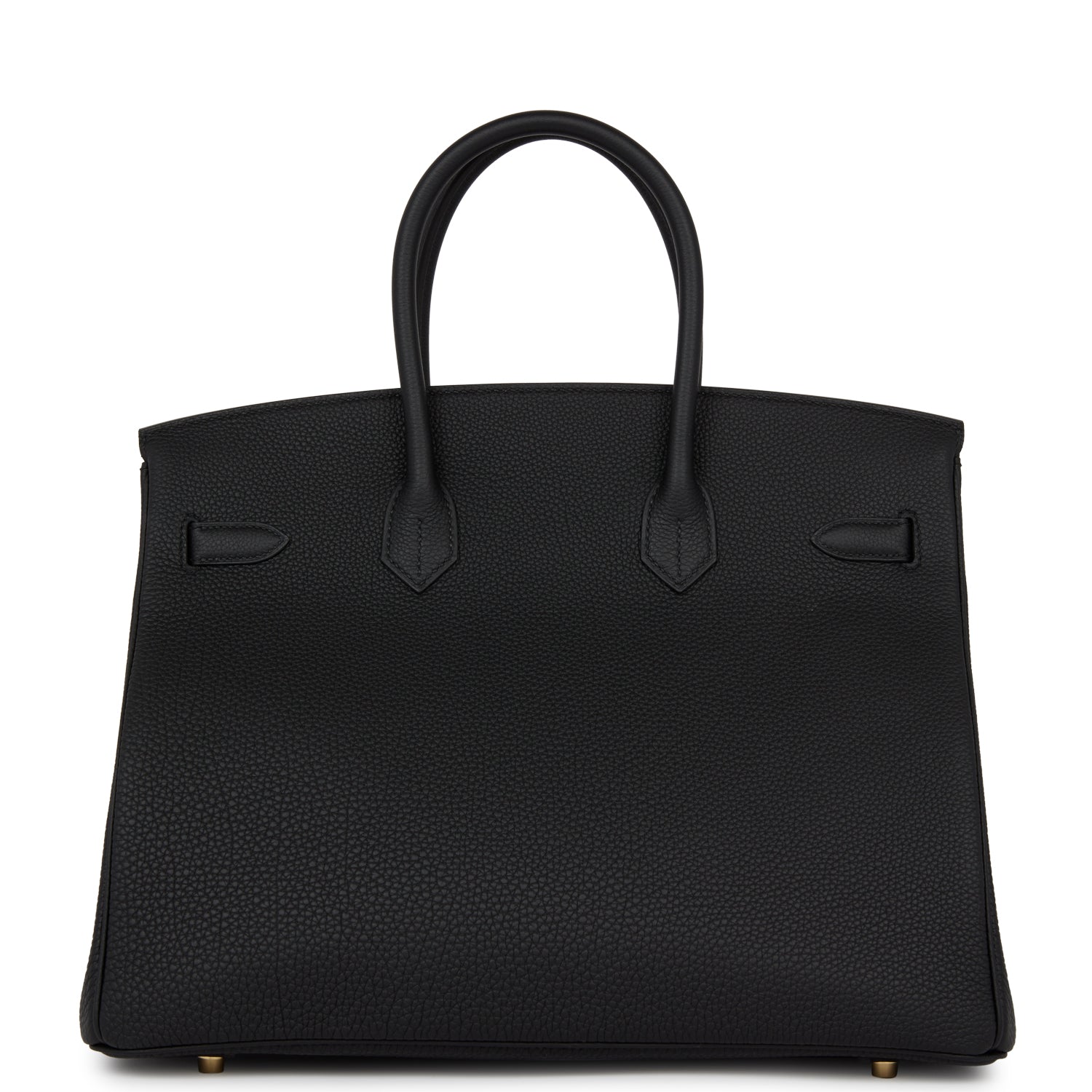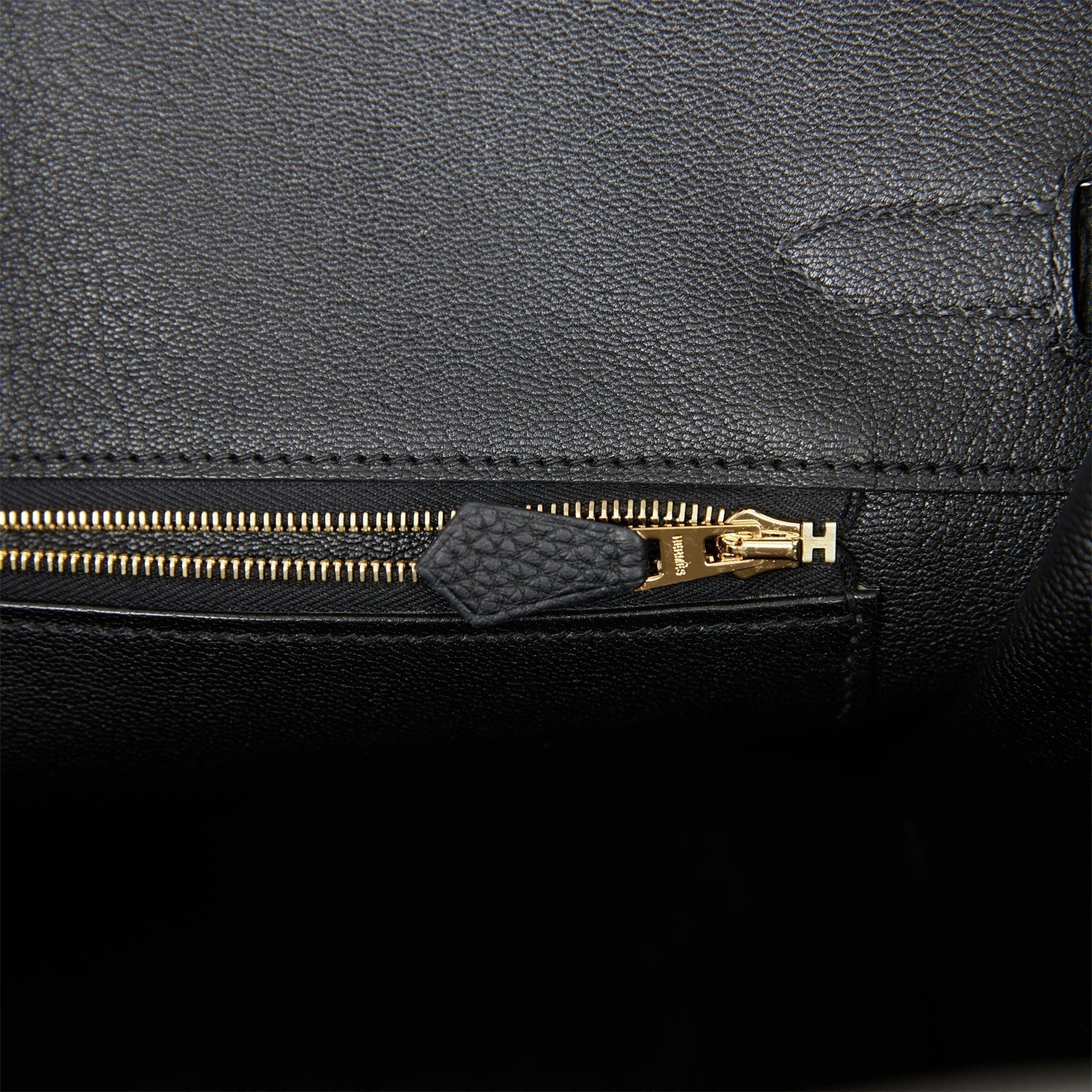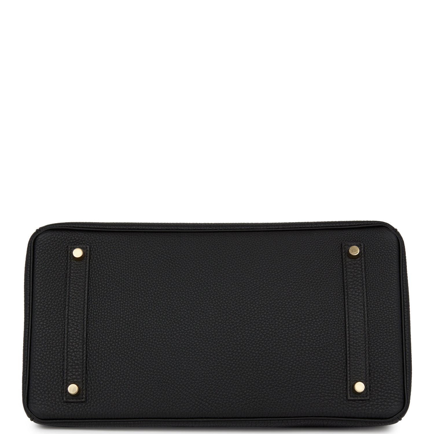 This Birkin is in Black togo leather with gold hardware and has tonal stitching, front flap, two straps with center toggle closure, clochette with lock and two keys, and double rolled handles.
