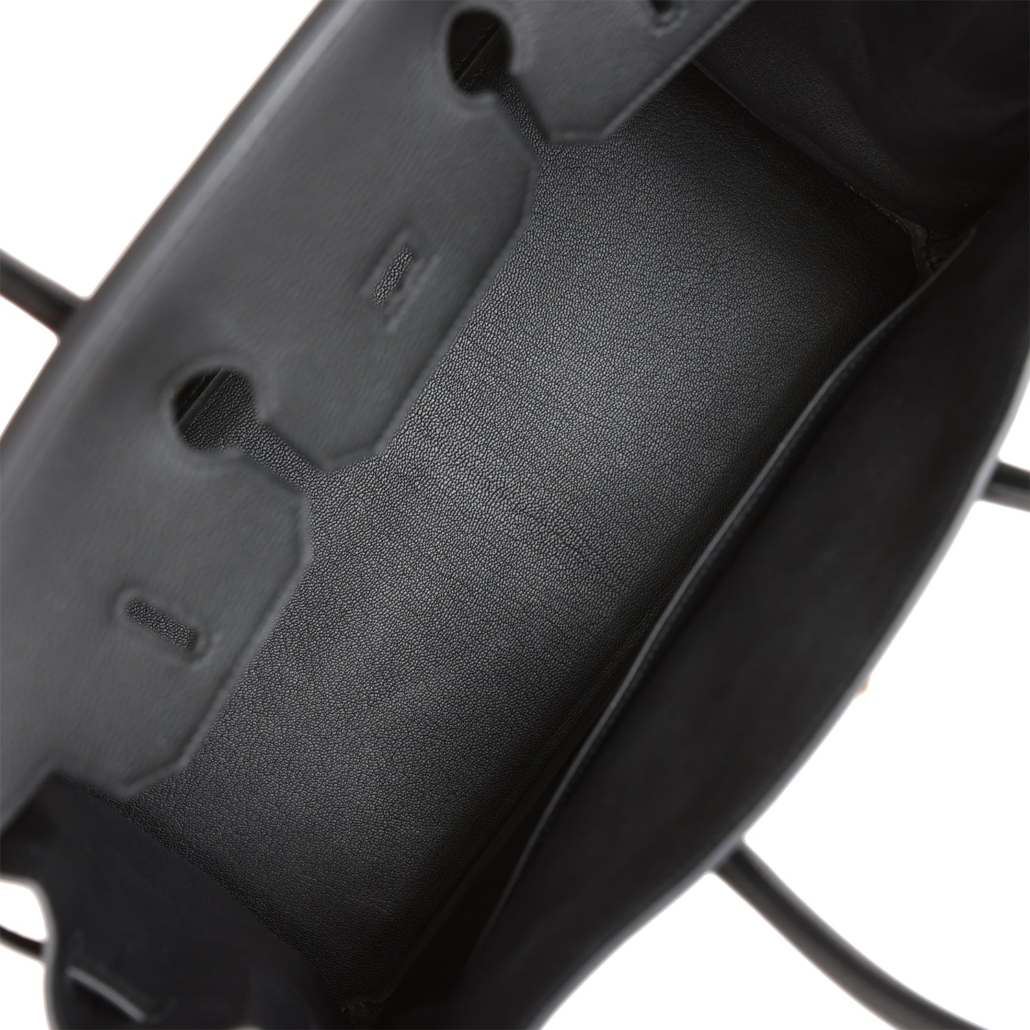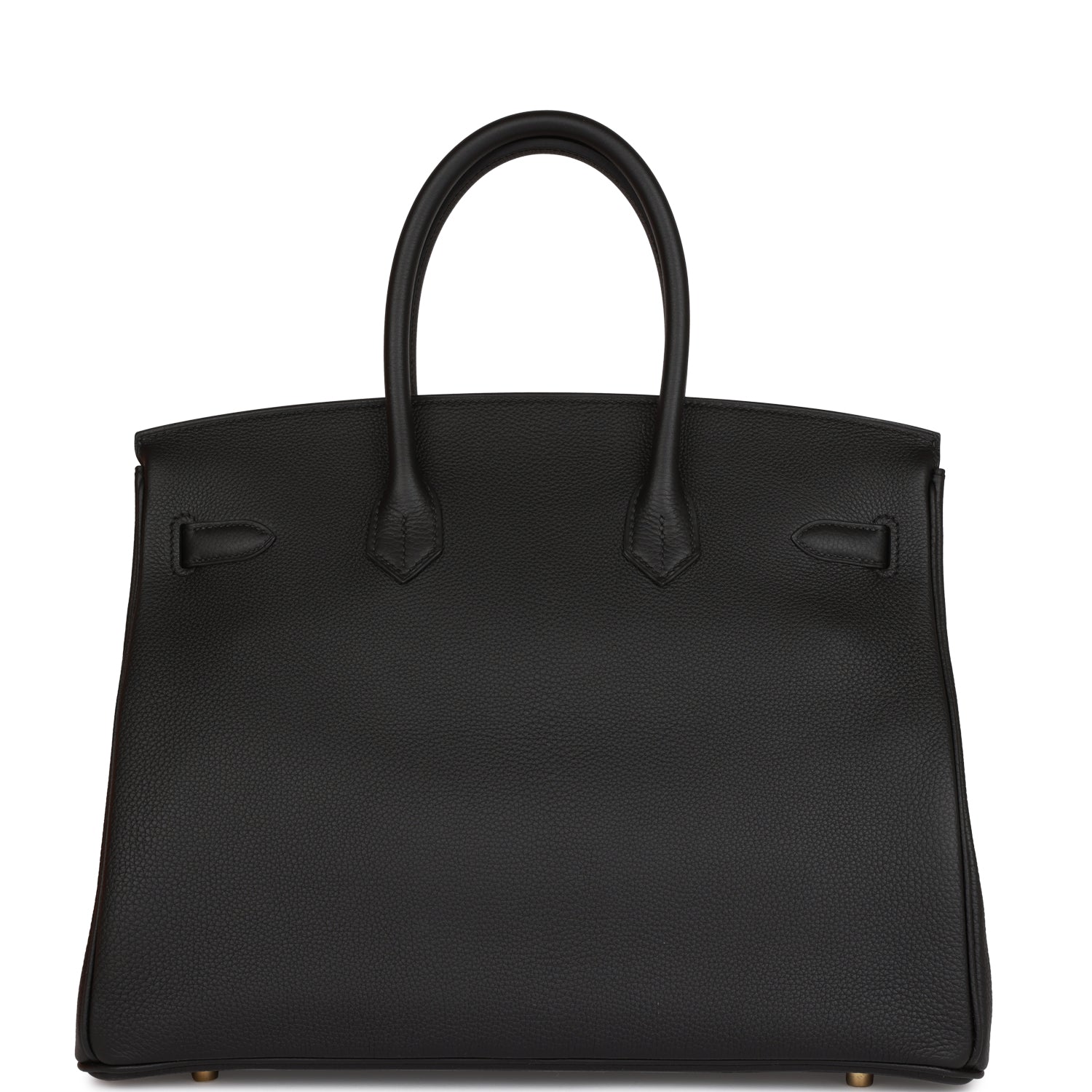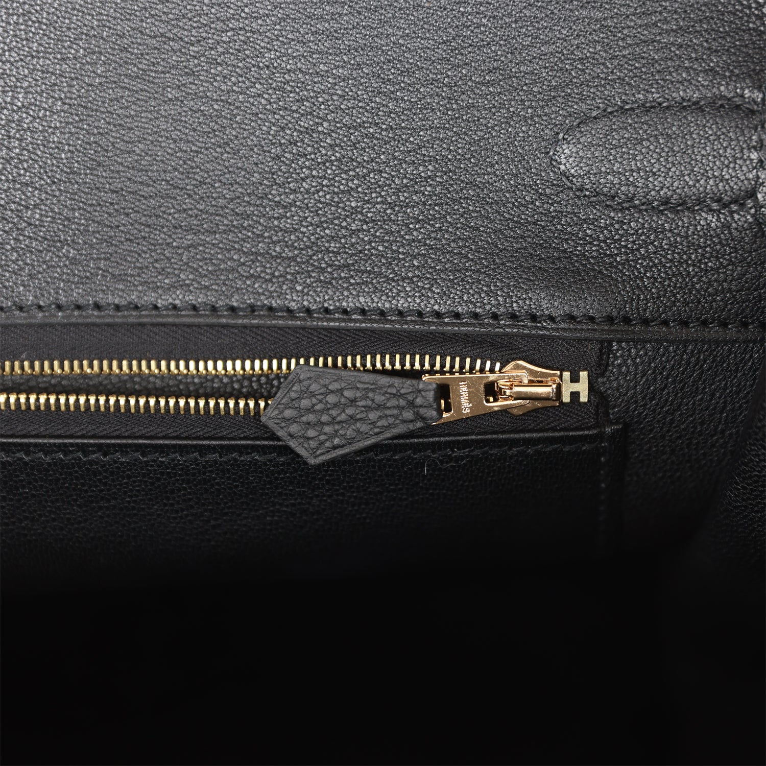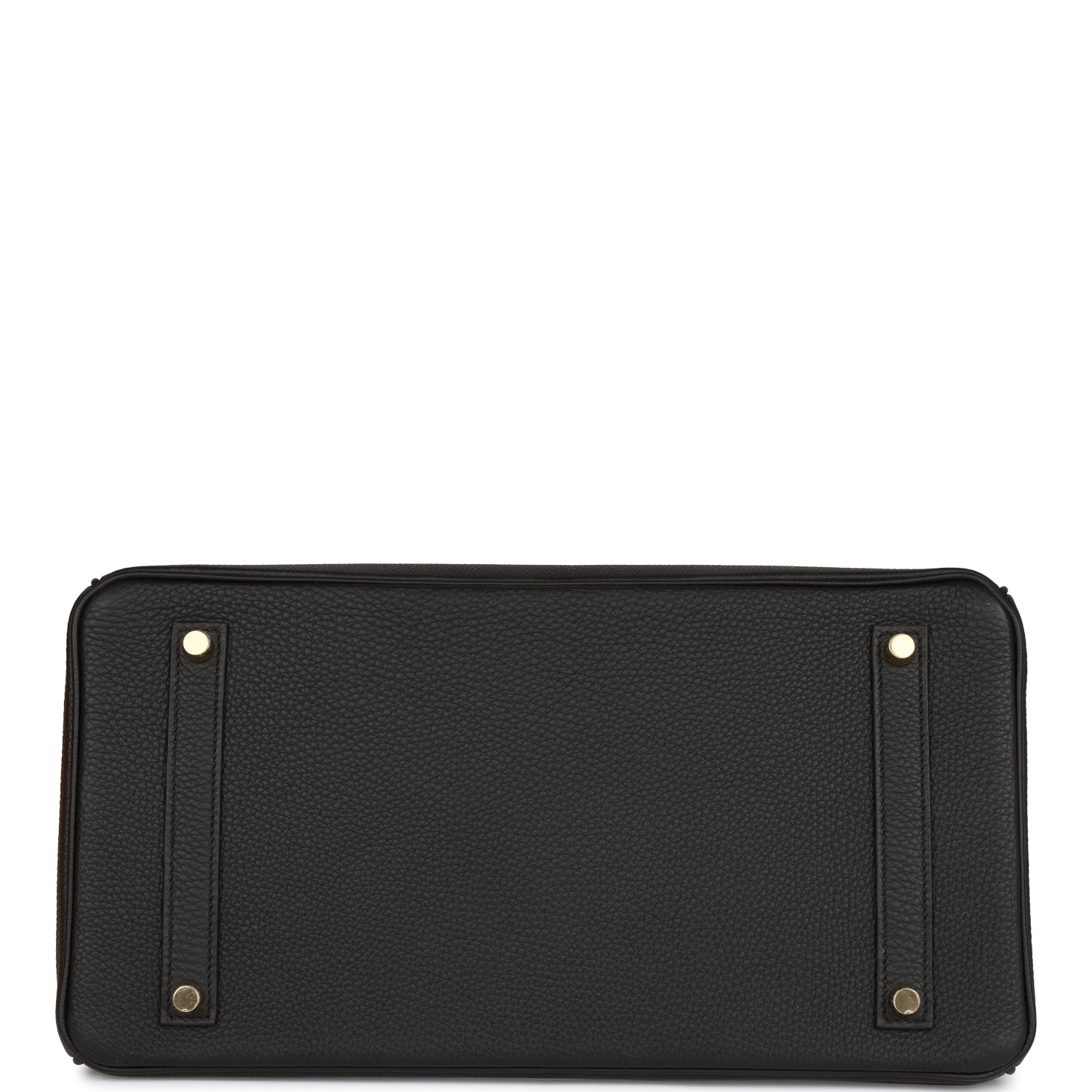 This Birkin is in Black togo leather with gold hardware and has tonal stitching, front flap, two straps with center toggle closure, clochette with lock and two keys, and double rolled handles.