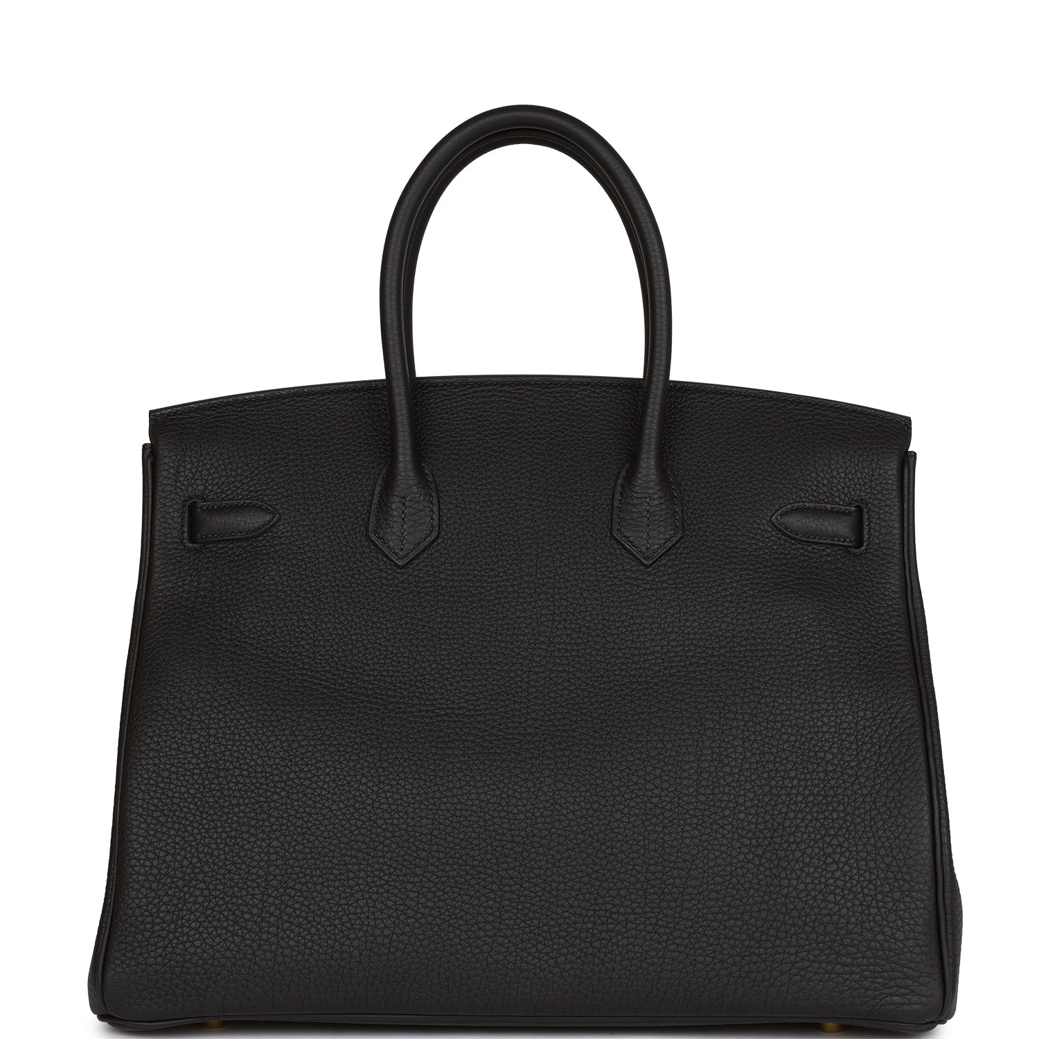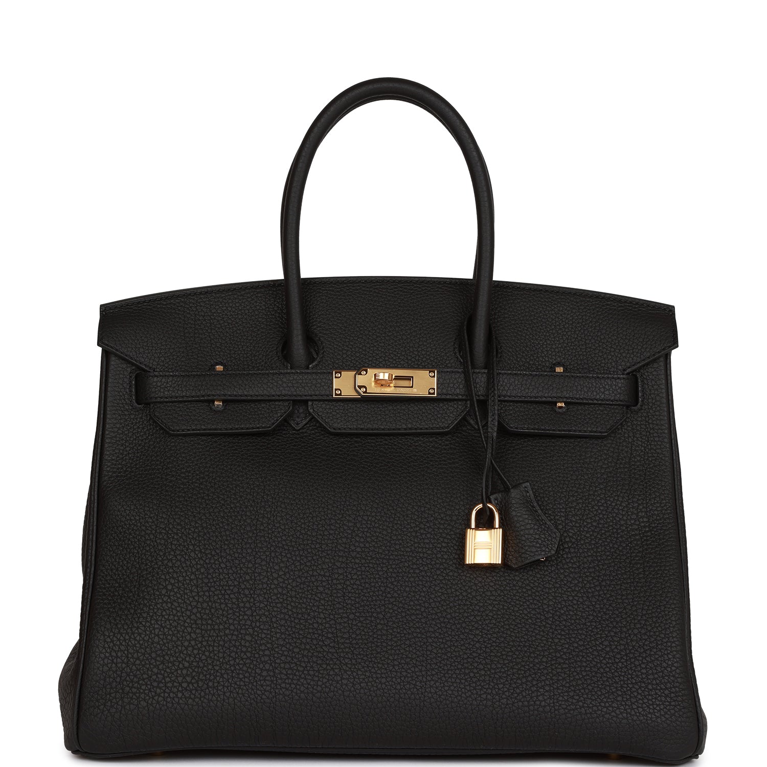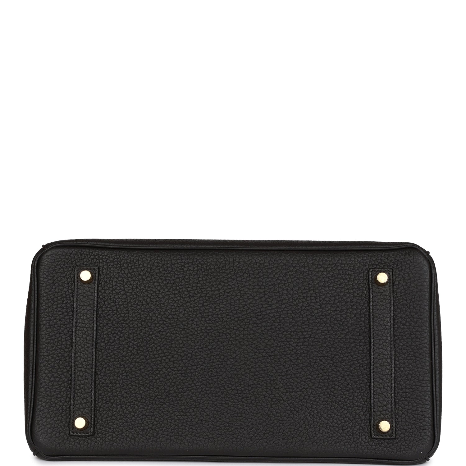 This Birkin is in Black togo leather with gold hardware and has tonal stitching, front flap, two straps with center toggle closure, clochette with lock and two keys, and double rolled handles.