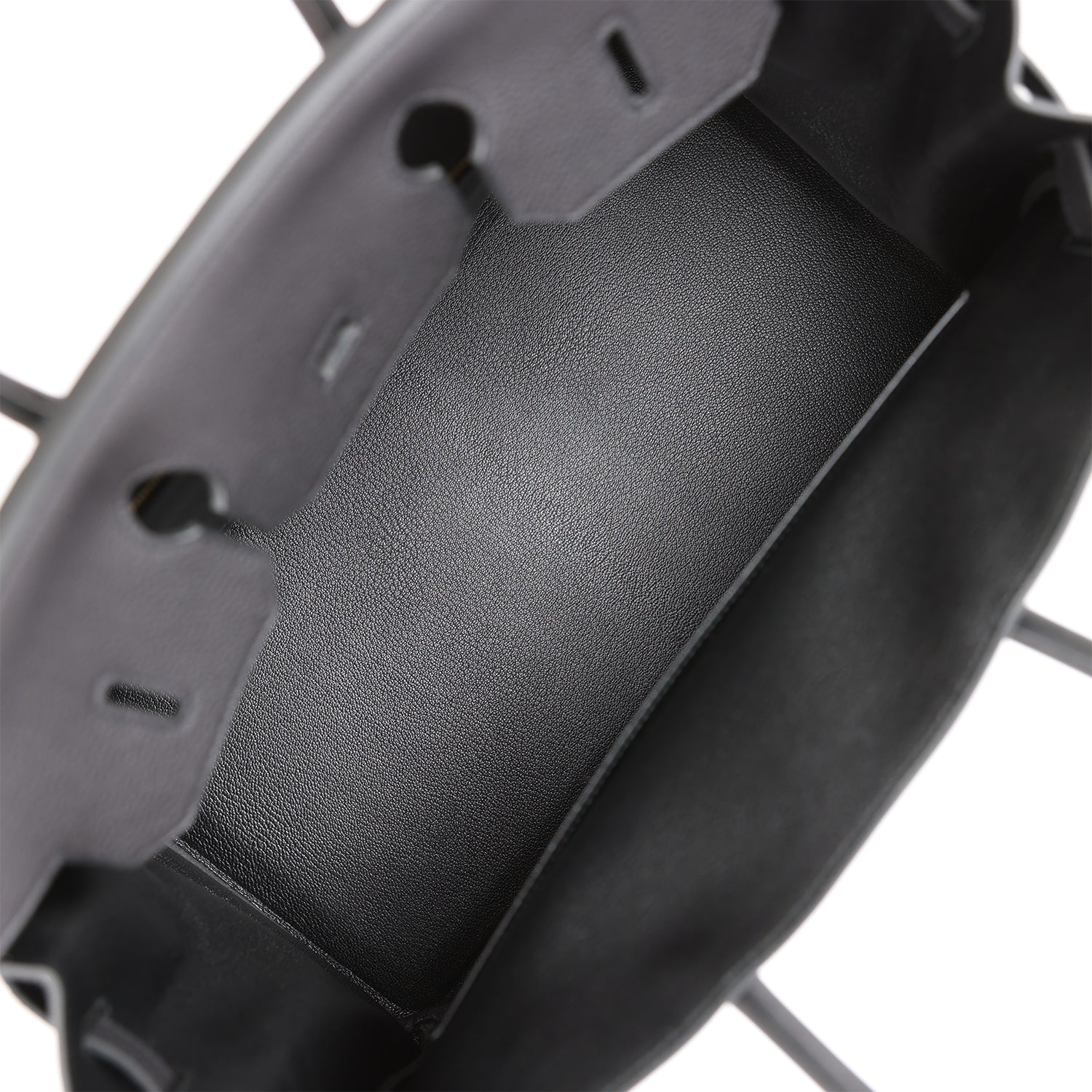 The interior is lined with black chevre and has one zip pocket with an Hermes engraved zipper pull and an open pocket on the opposite side.