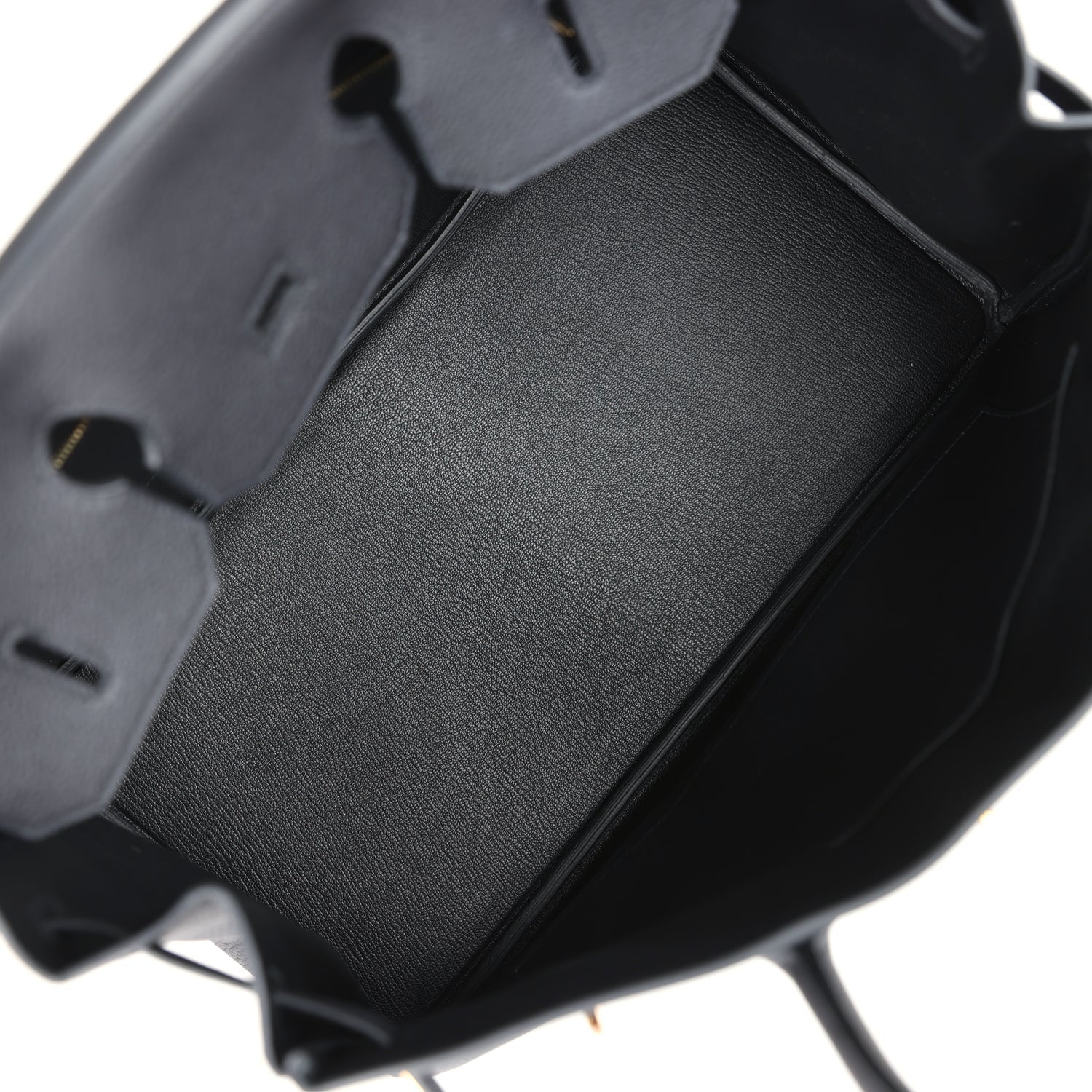 The interior is lined with Black chevre and has one zip pocket with an Hermes engraved zipper pull and an open pocket on the opposite side.
