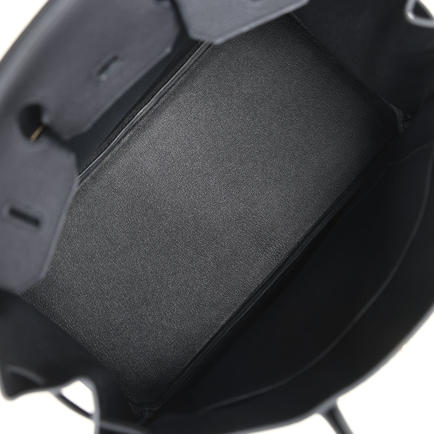 The interior is lined with Black chevre and has one zip pocket with an Hermes engraved zipper pull and an open pocket on the opposite side.
