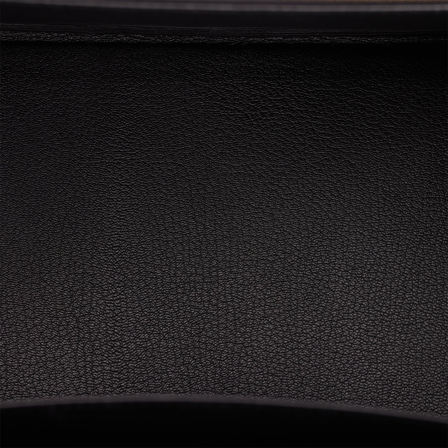The interior is lined with black chevre and has one zip pocket with an Hermes engraved zipper pull and an open pocket on the opposite side.