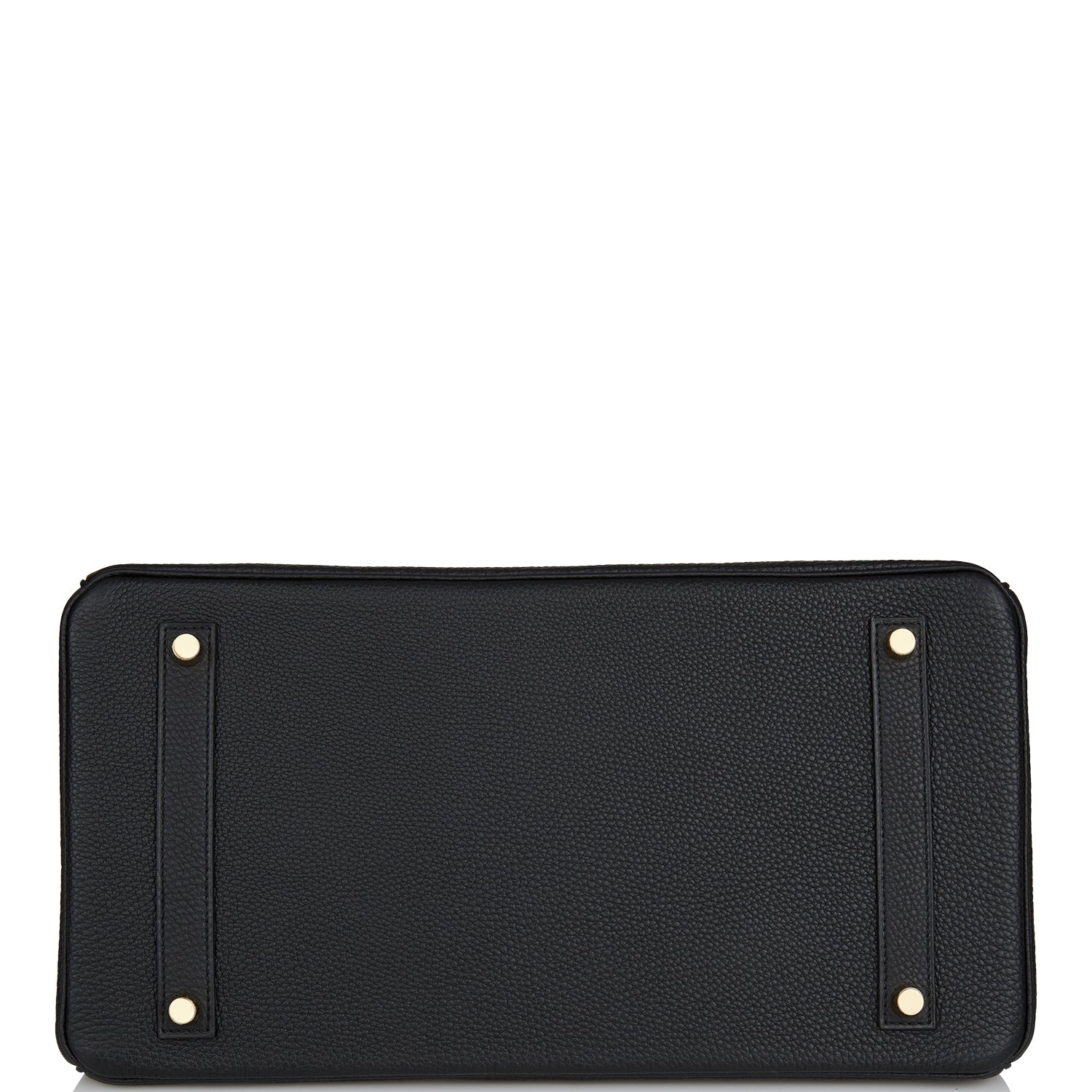This Birkin is in Black togo leather with gold hardware and has tonal stitching, front flap, two straps with center toggle closure, clochette with lock and two keys, and double rolled handles.