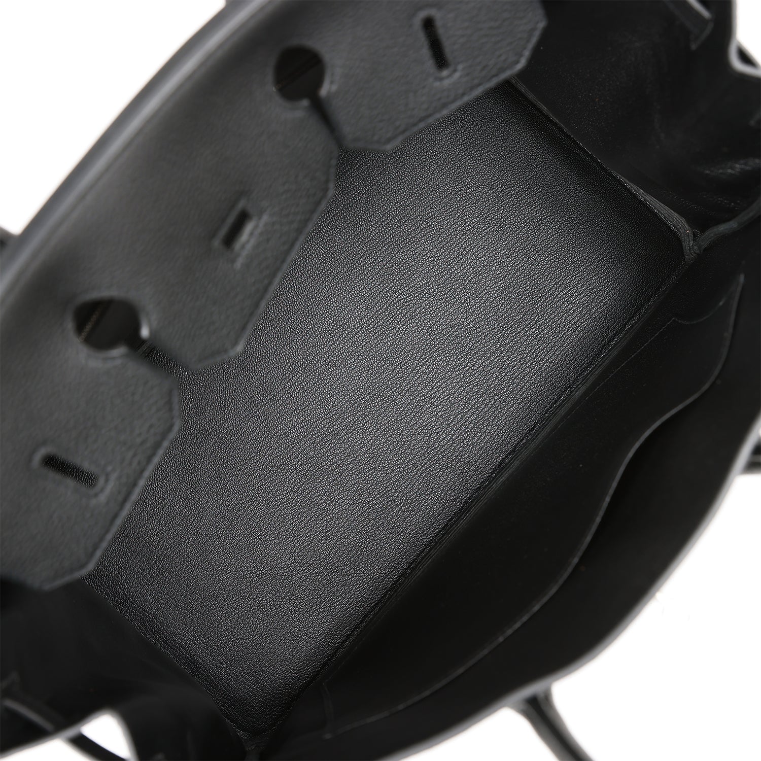 The interior is lined with black chevre and has one zip pocket with an Hermes engraved zipper pull and an open pocket on the opposite side.