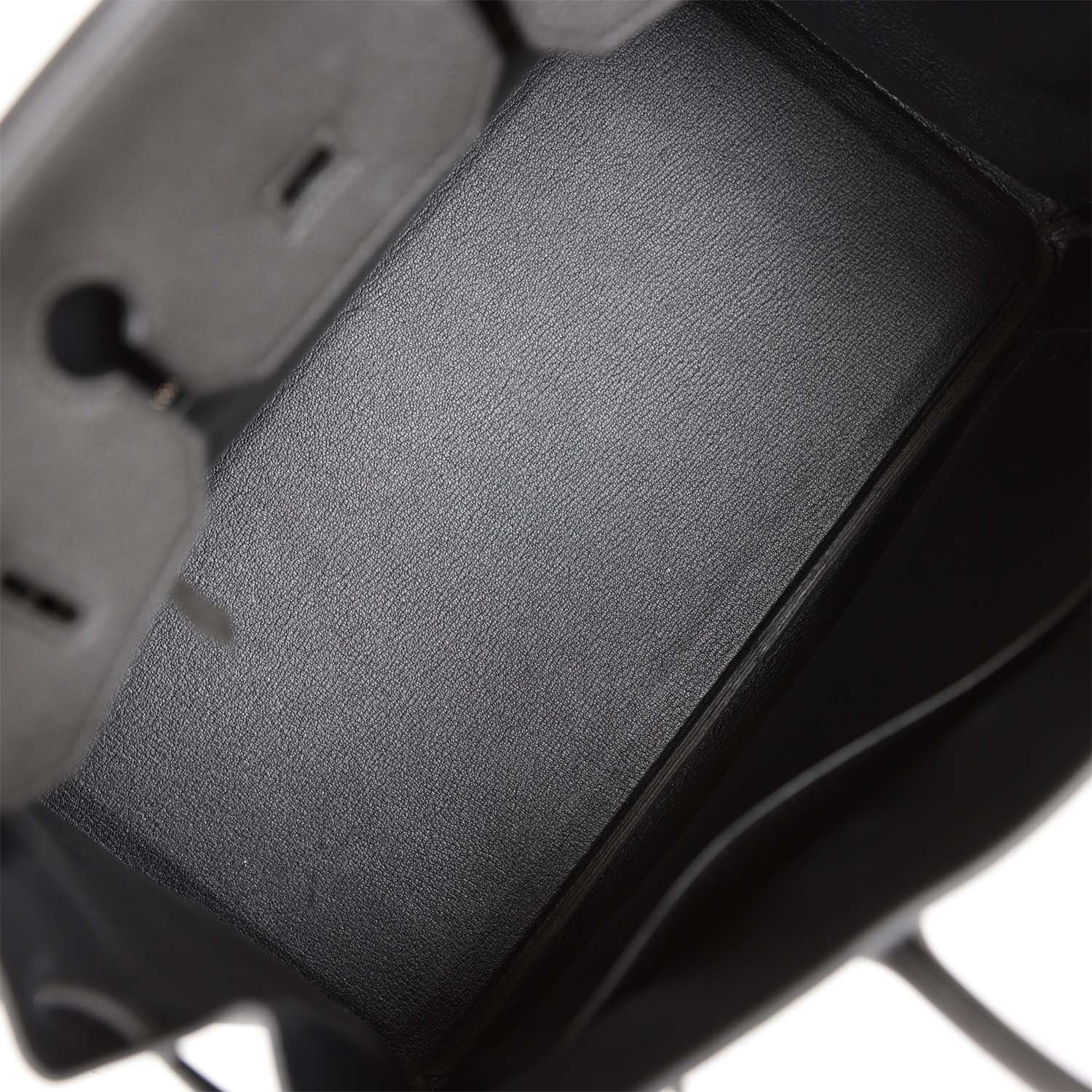The interior is lined with black chevre and has one zip pocket with an Hermes engraved zipper pull and an open pocket on the opposite side.