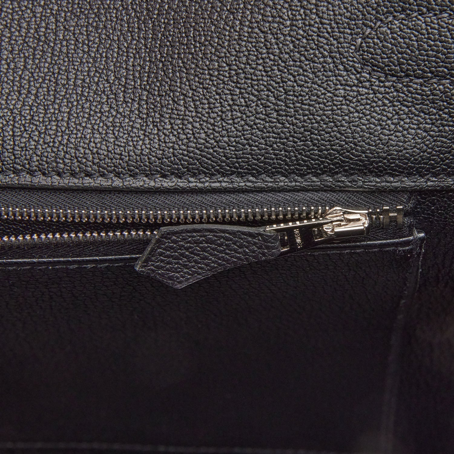 The interior is lined with black chevre and has one zip pocket with an Hermes engraved zipper pull and an open pocket on the opposite side.