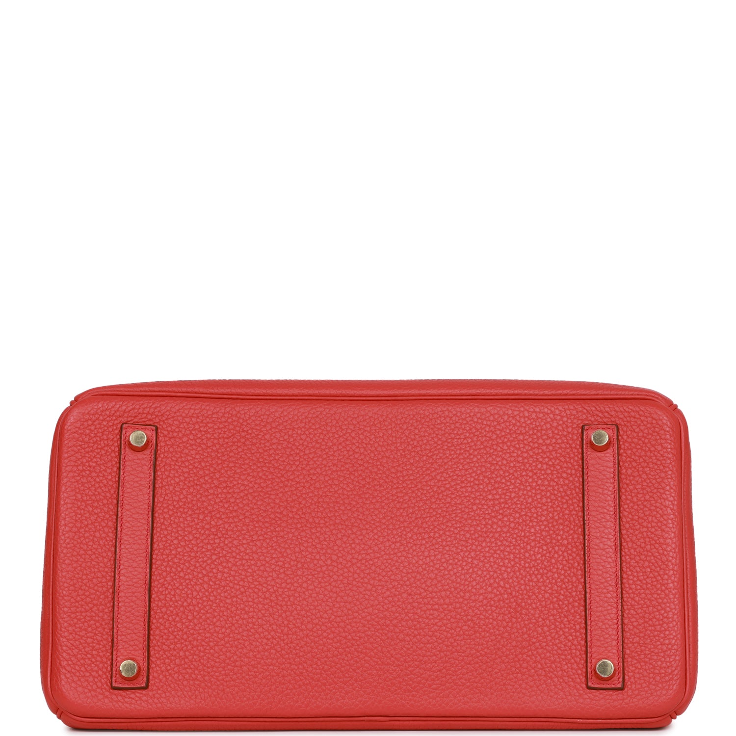 This Birkin is in Bougainvillea clemence leather with gold hardware and has tonal stitching, front flap, two straps with center toggle closure, clochette with lock and two keys, and double rolled handles.