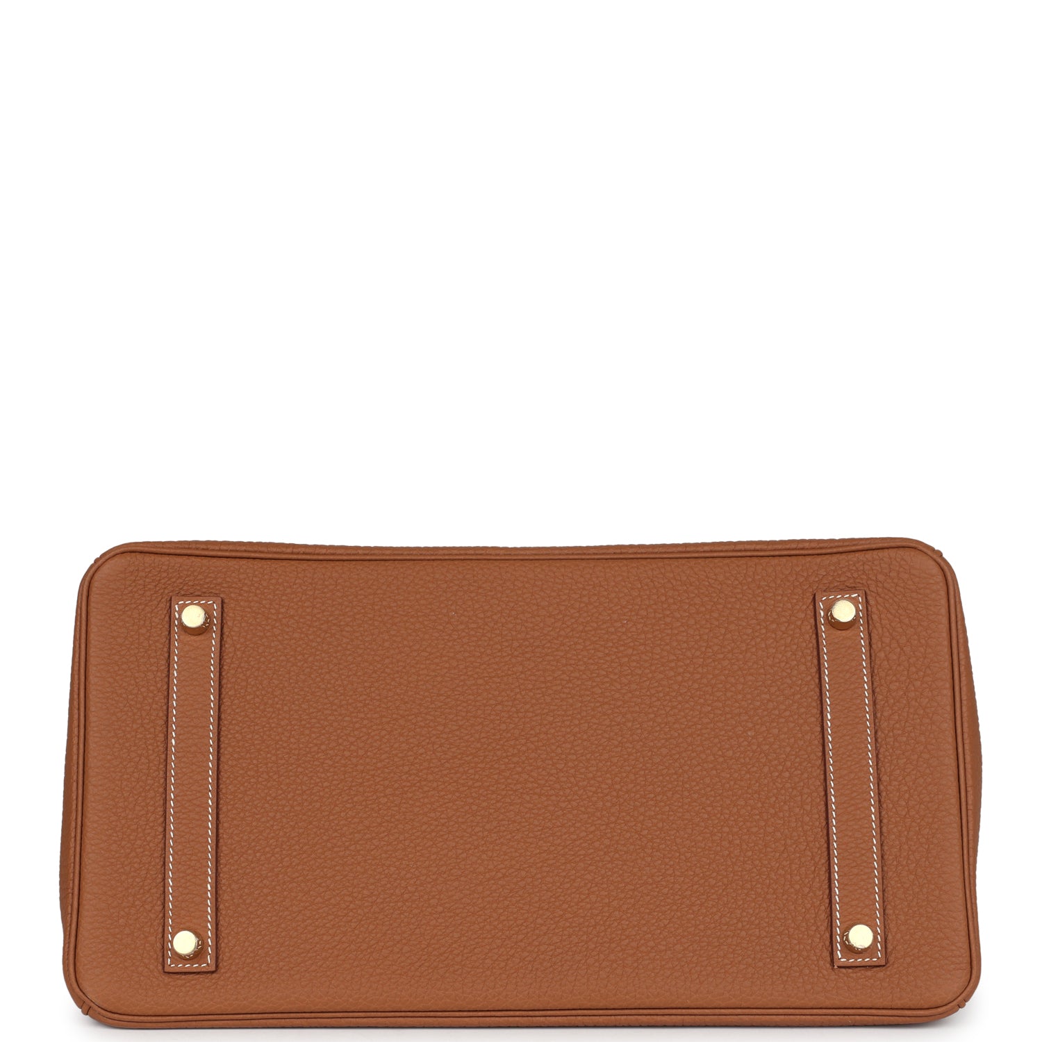 This Birkin is in Gold togo leather with gold hardware and has contrast stitching, two straps with front toggle closure, clochette with lock and two keys and double rolled handles.