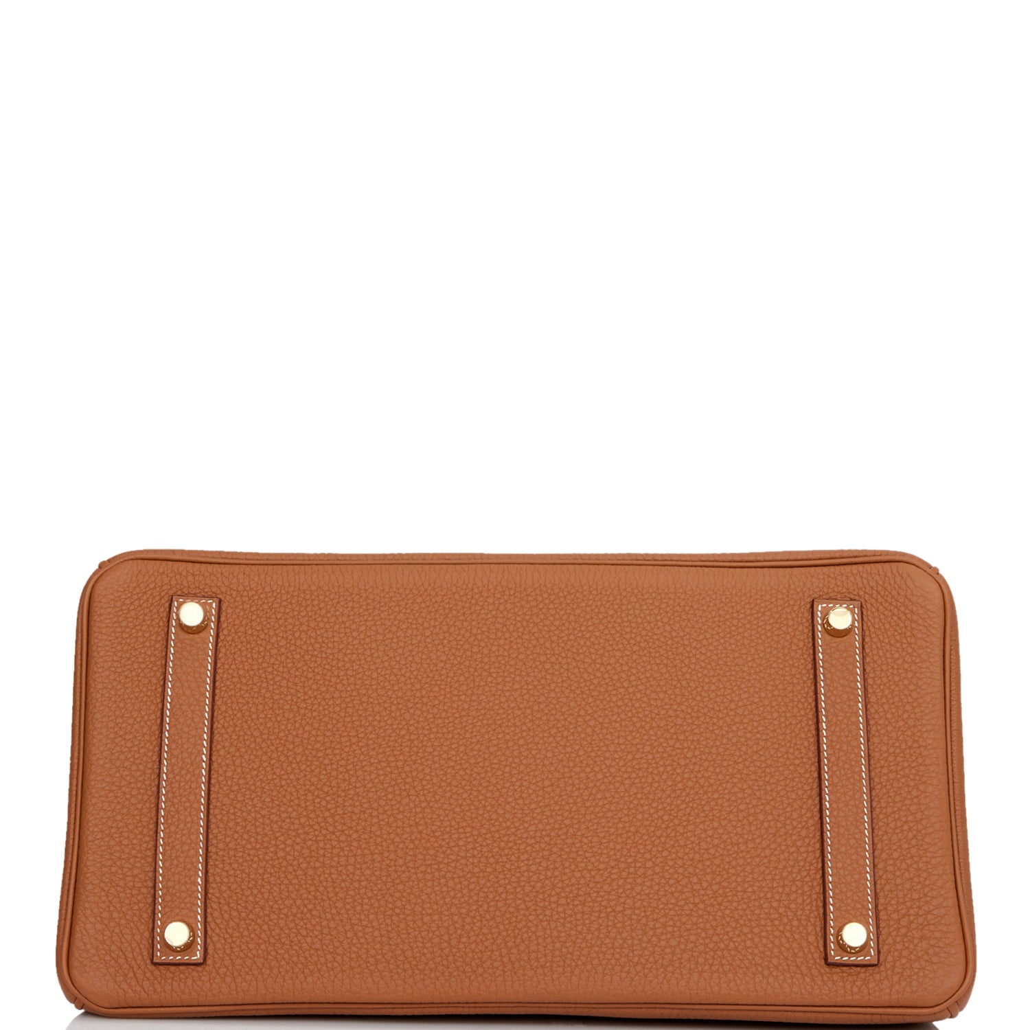 This Birkin is in Gold togo leather with gold hardware and has contrast stitching, two straps with front toggle closure, clochette with lock and two keys and double rolled handles.
