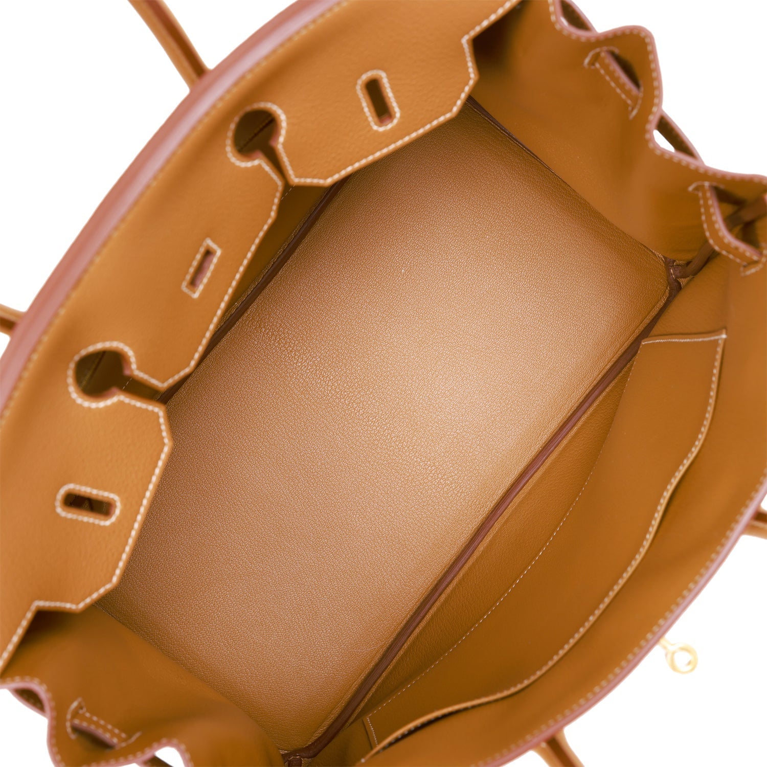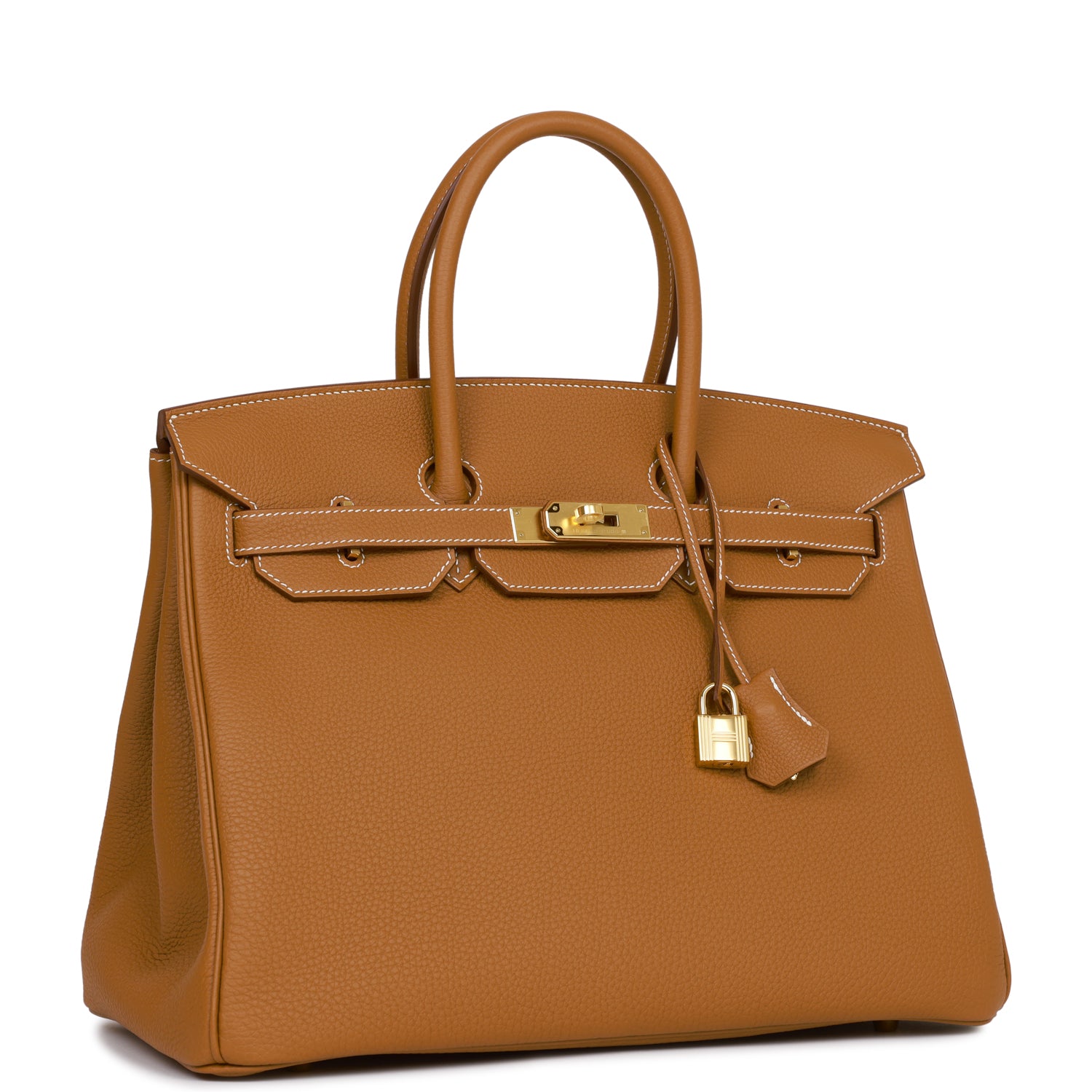 This Birkin is in Gold togo leather with gold hardware and has contrast stitching, two straps with front toggle closure, clochette with lock and two keys and double rolled handles.