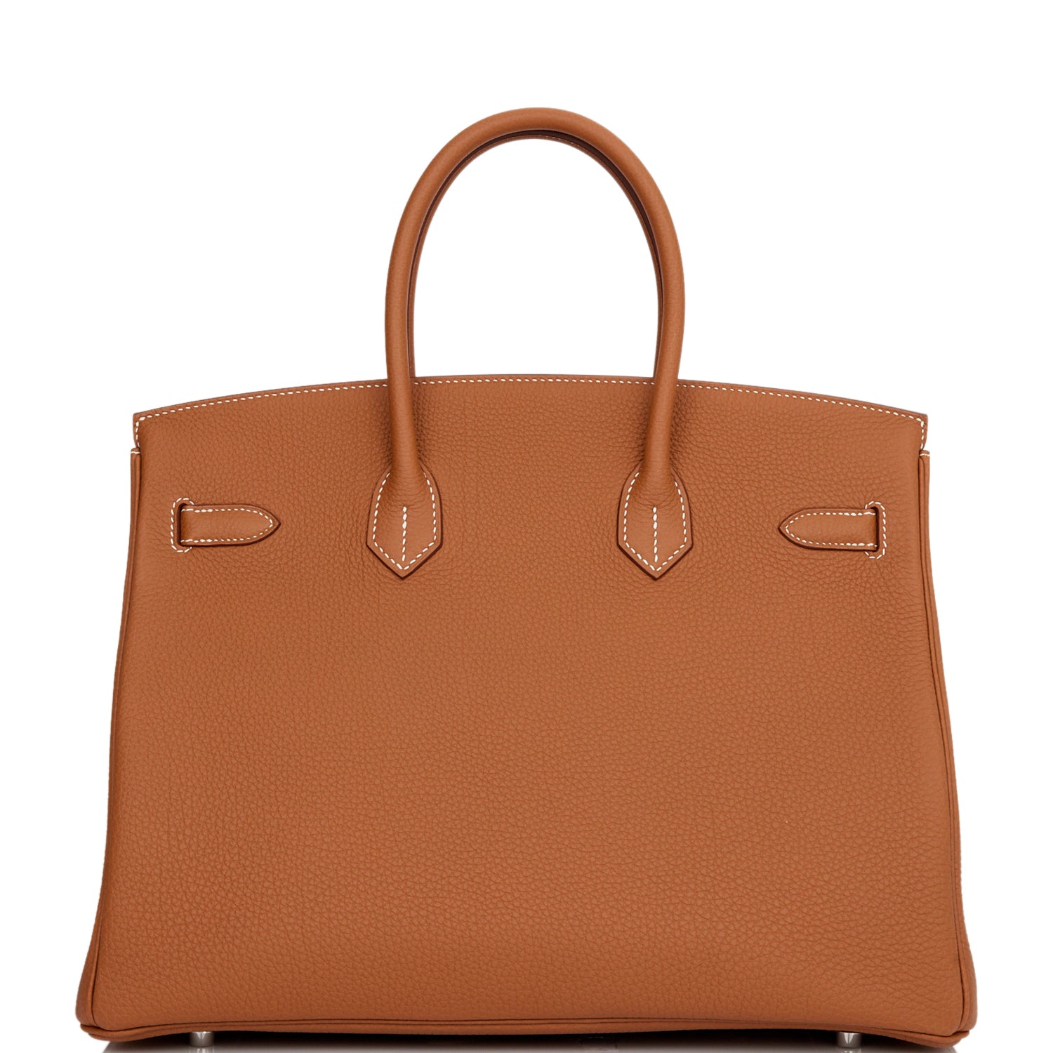 This Birkin is in Gold togo leather with gold hardware and has contrast stitching, two straps with front toggle closure, clochette with lock and two keys and double rolled handles.