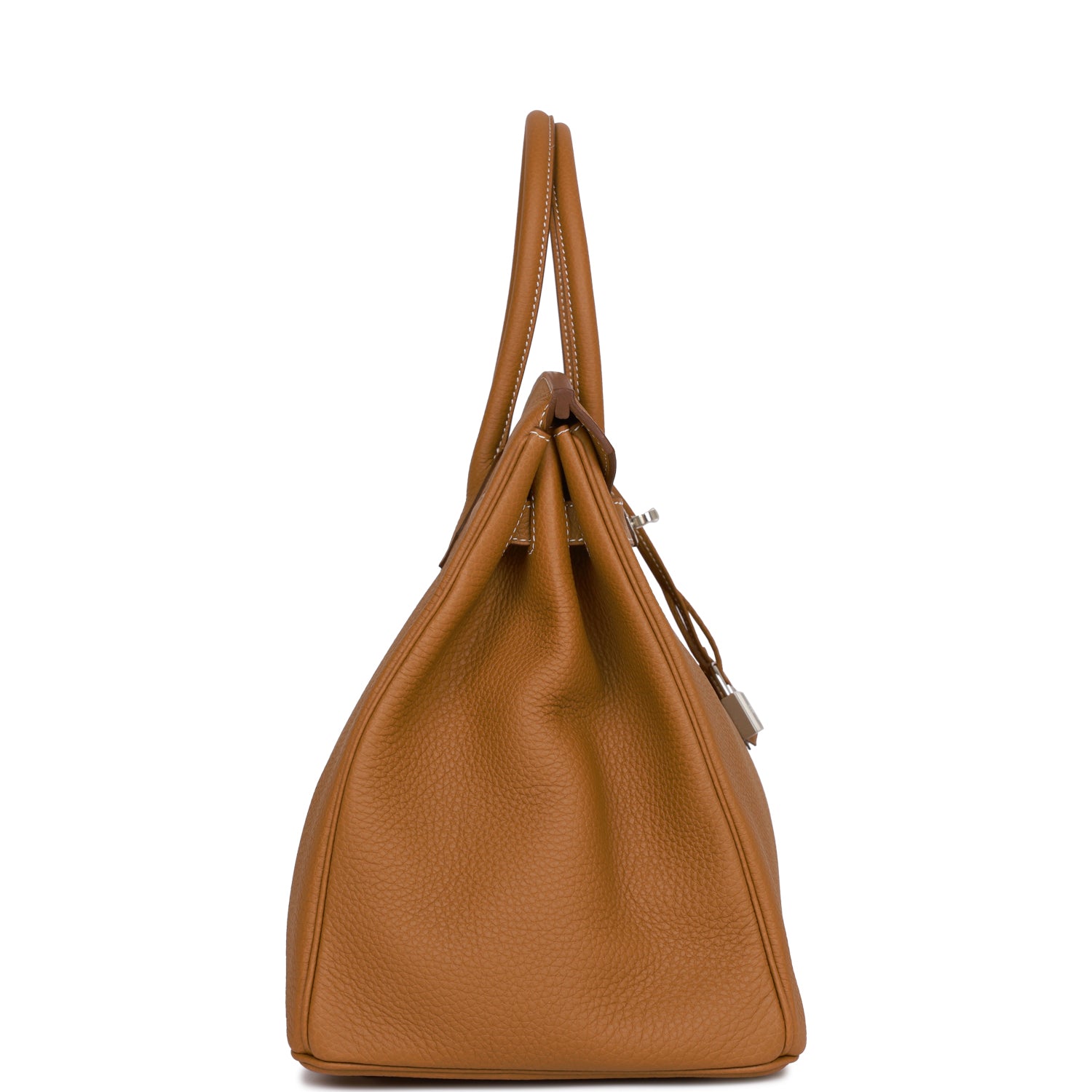 This Birkin is in Gold togo leather with gold hardware and has contrast stitching, two straps with front toggle closure, clochette with lock and two keys and double rolled handles.