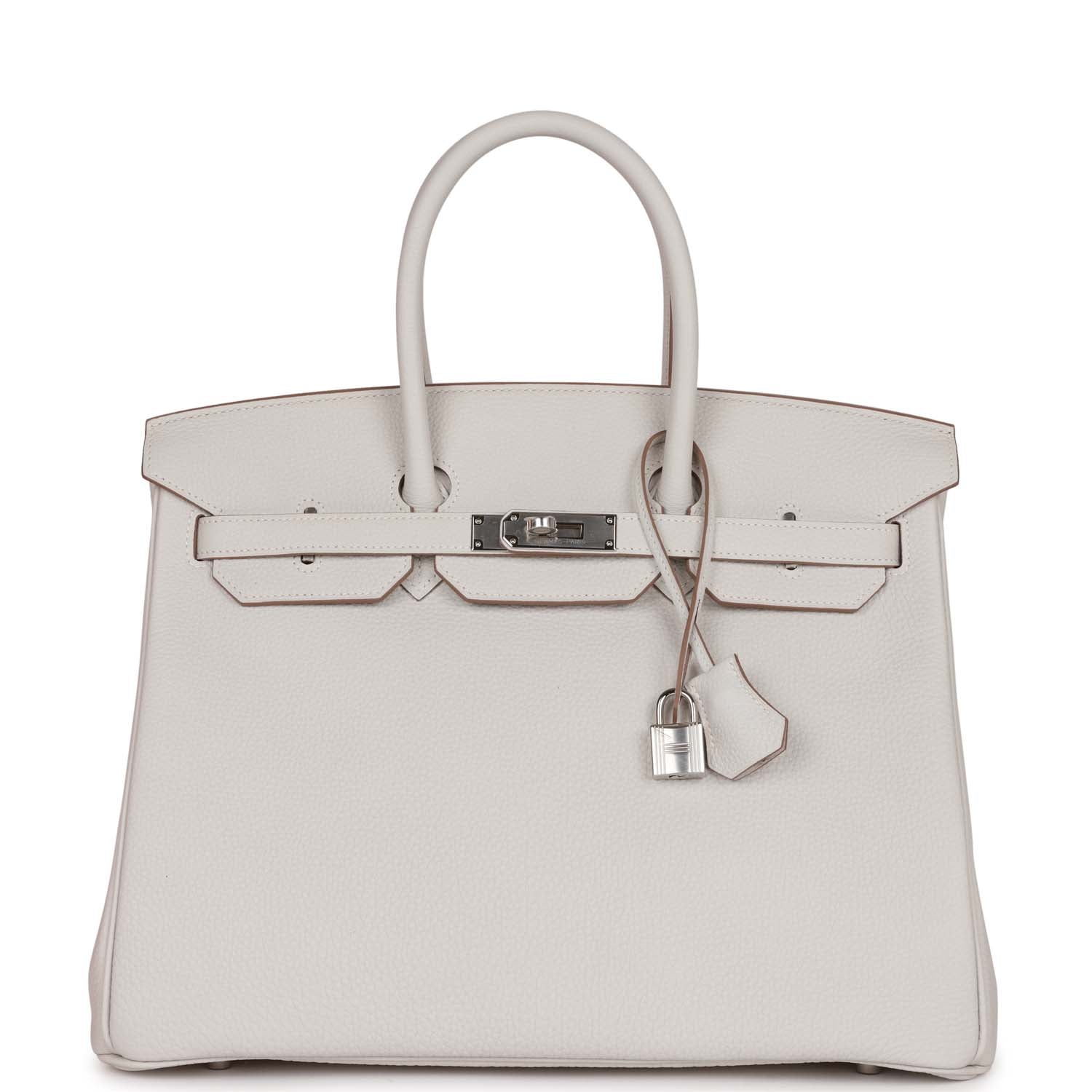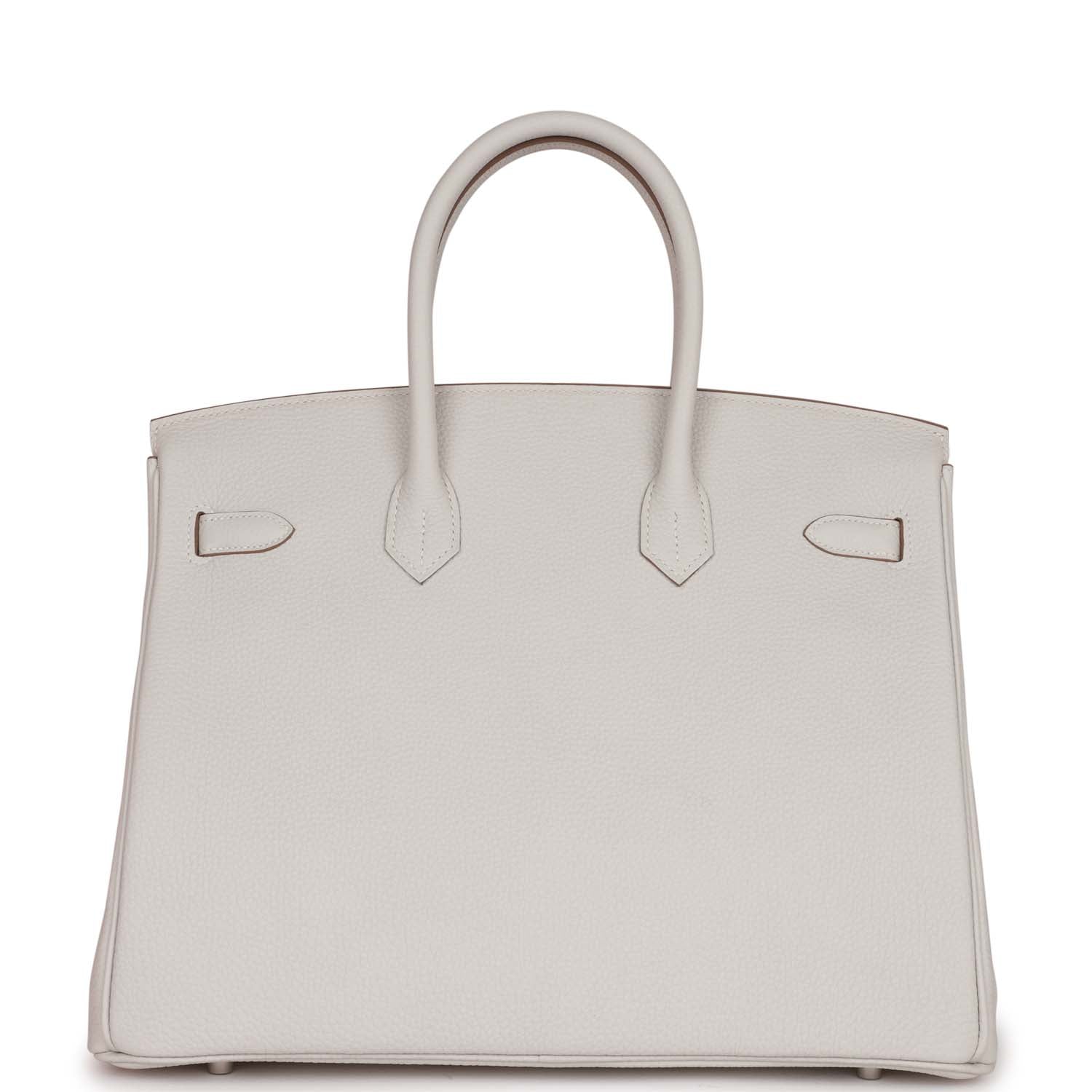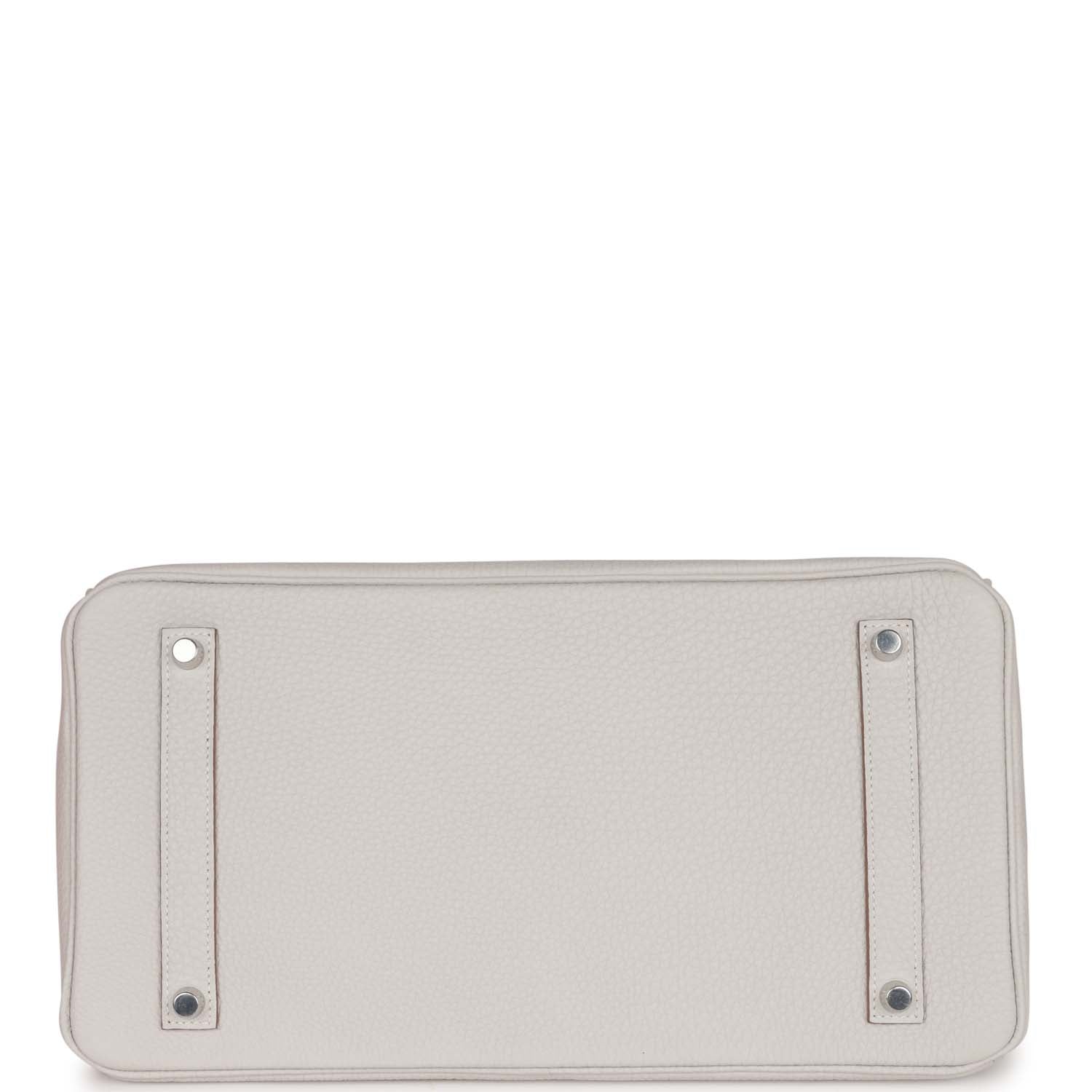 This Birkin is in Gris Pale togo leather with palladium hardware features tonal stitching, front flap, two straps with center toggle closure, clochette with lock and two keys and double rolled handles.