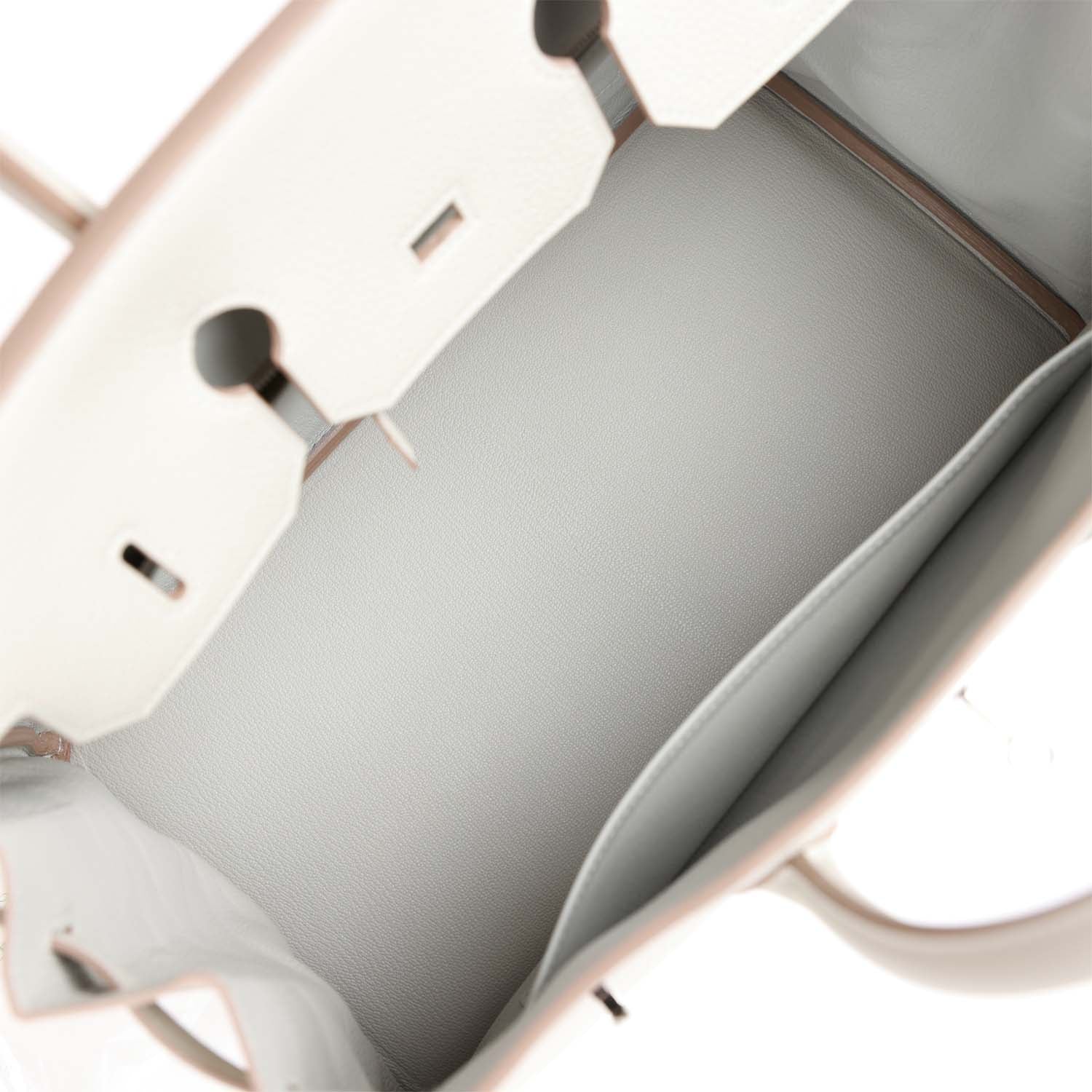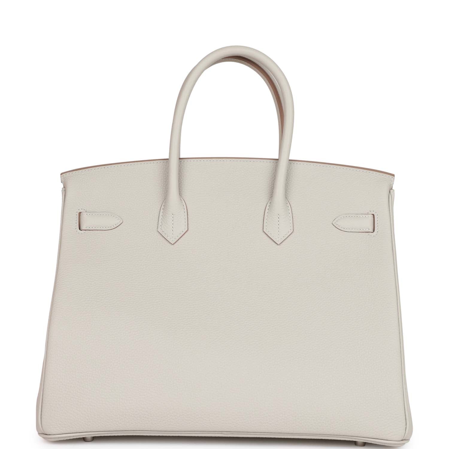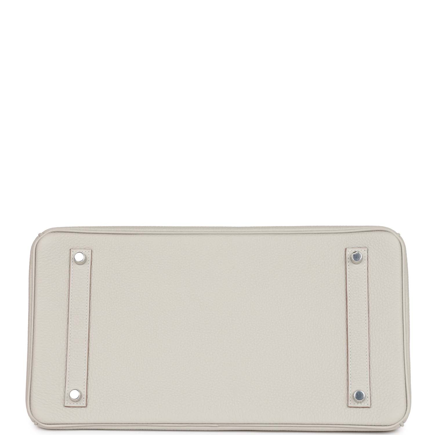 This Birkin is in Gris Perle togo leather with palladium hardware and features tonal stitching, front flap, two straps with center toggle closure, clochette with lock and two keys and double rolled handles.