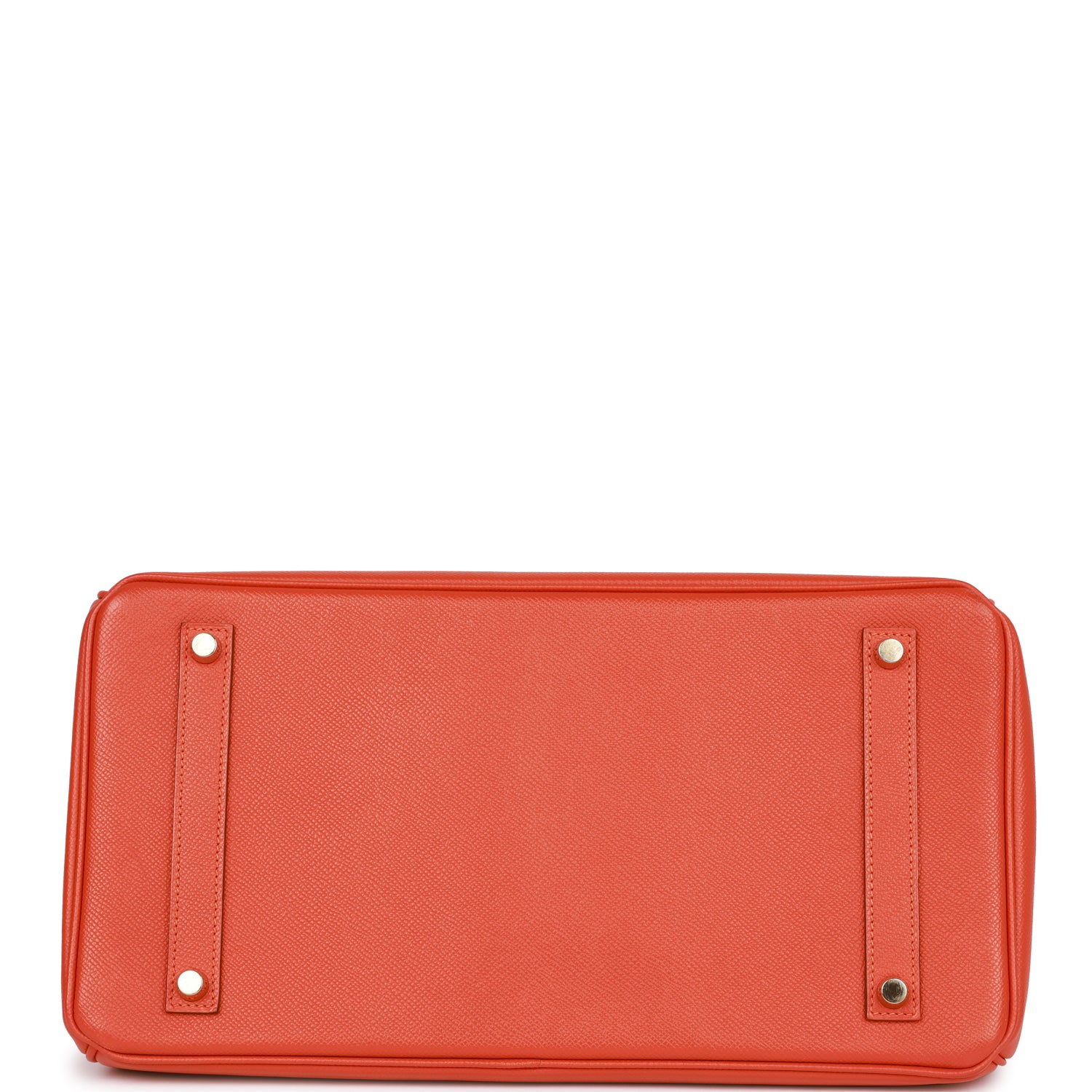 This Birkin is in Mangue epsom leather with gold hardware and has tonal stitching, front flap, two straps with center toggle closure, clochette with lock and two keys, and double rolled handles.