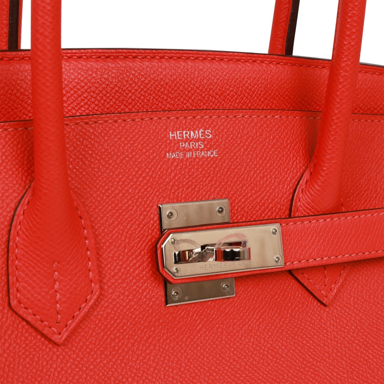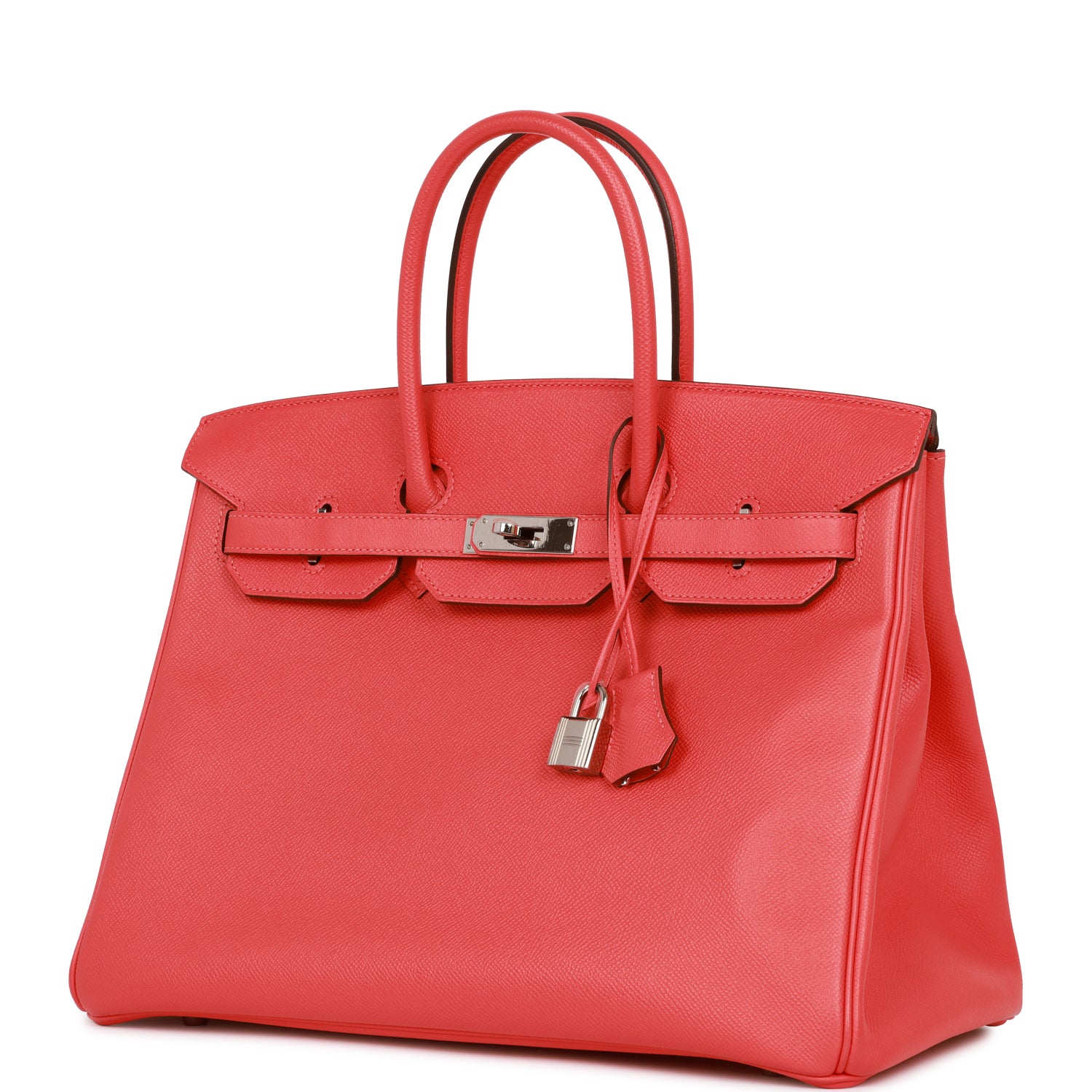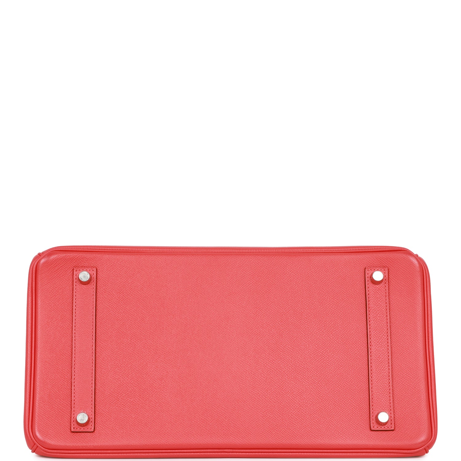This Birkin is in Rose Jaipur epsom leather with palladium hardware and has tonal stitching, front flap, two straps with center toggle closure, clochette with lock and two keys, and double rolled handles.