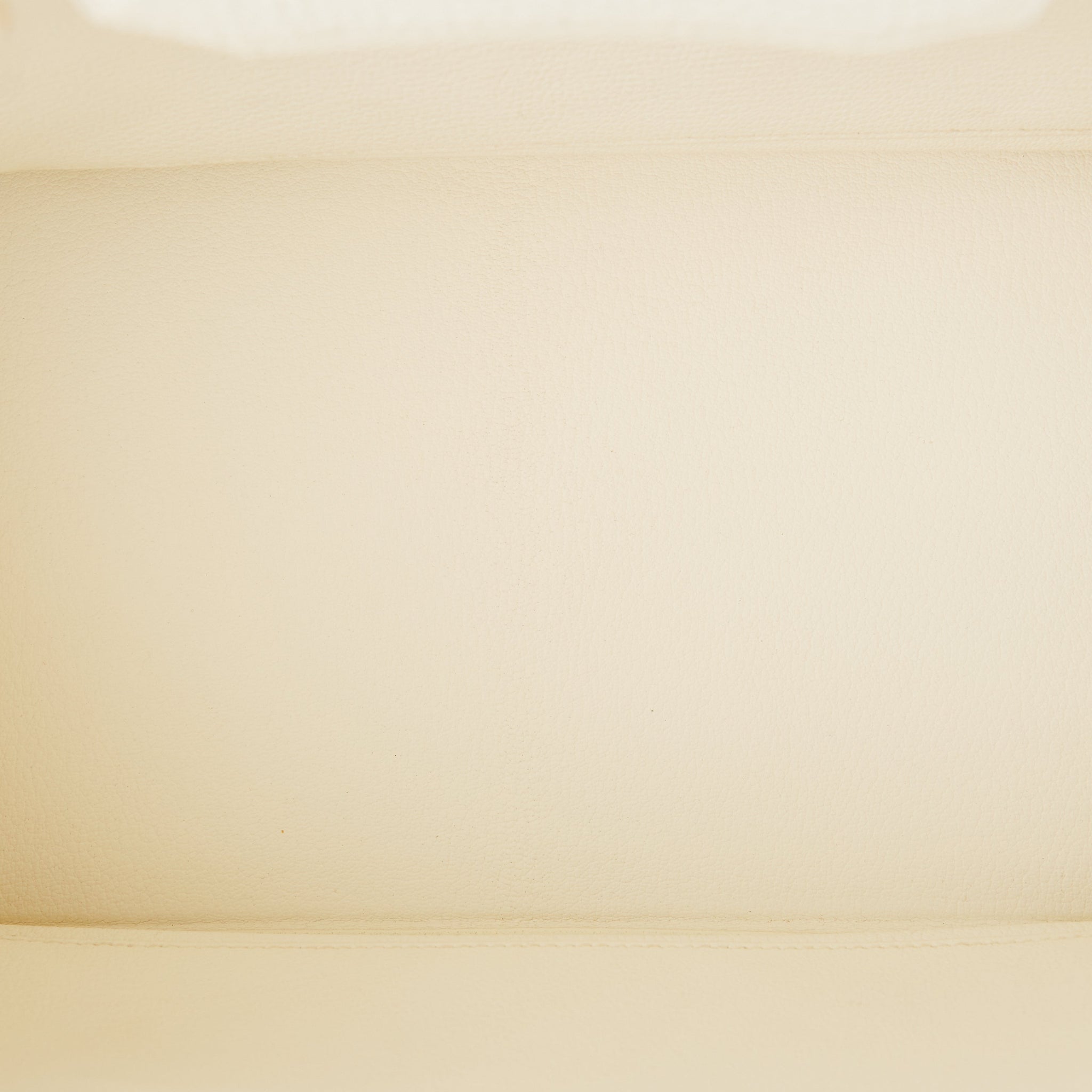 The interior is lined with White chevre and has one zip pocket with an Hermes engraved zipper pull and an open pocket on the opposite side.