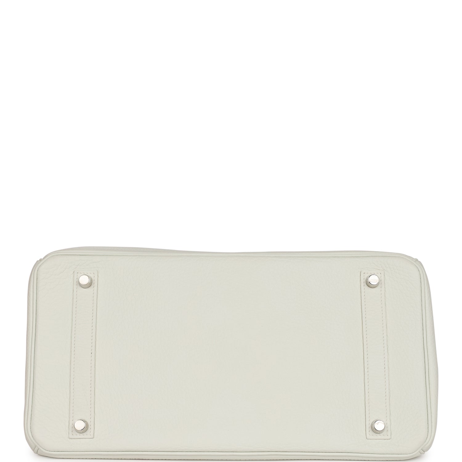 This Birkin is in White togo leather with palladium hardware and has tonal stitching, front flap, two straps with center toggle closure, clochette with lock and two keys, and double rolled handles.