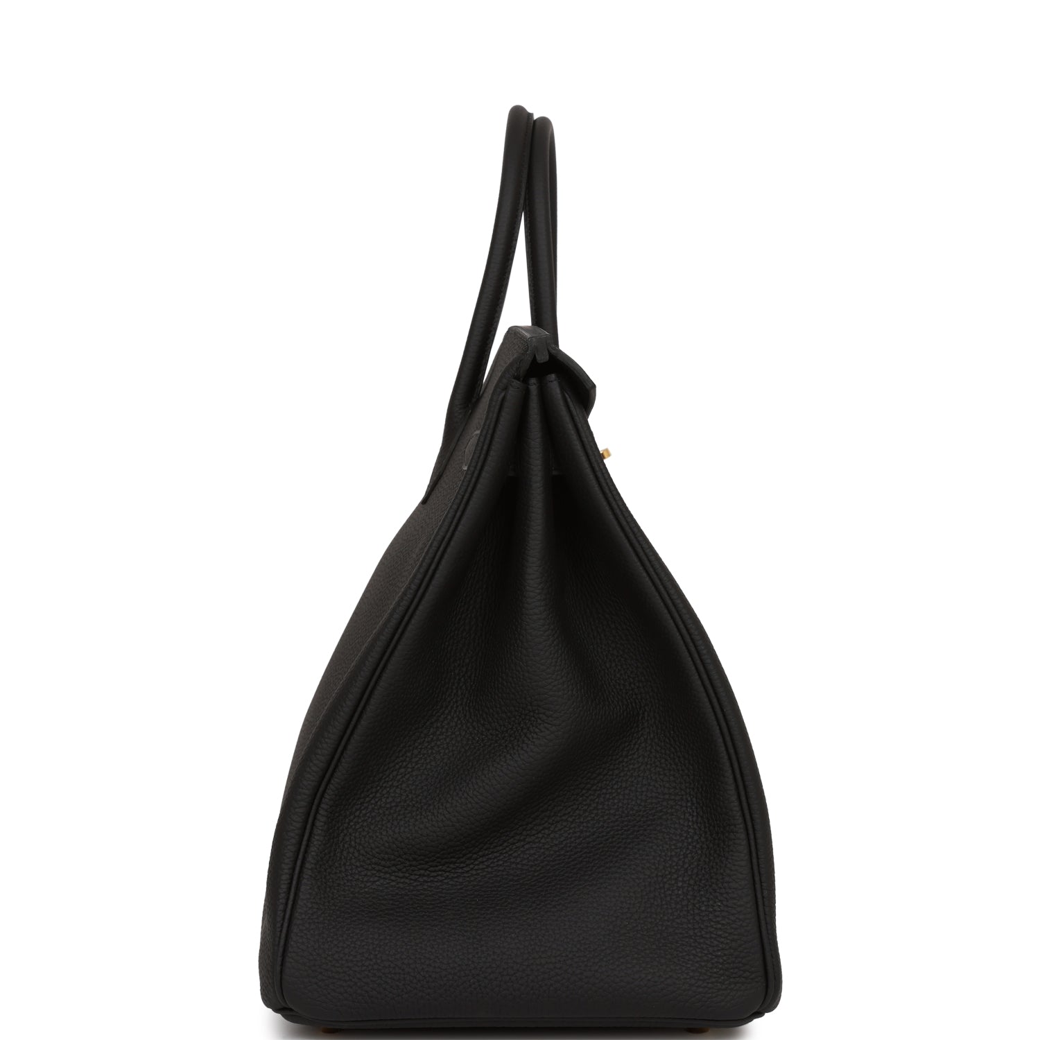 This Birkin is in Black togo leather with gold hardware and has tonal stitching, two straps with front toggle closure, clochette with lock and two keys and double rolled handles.