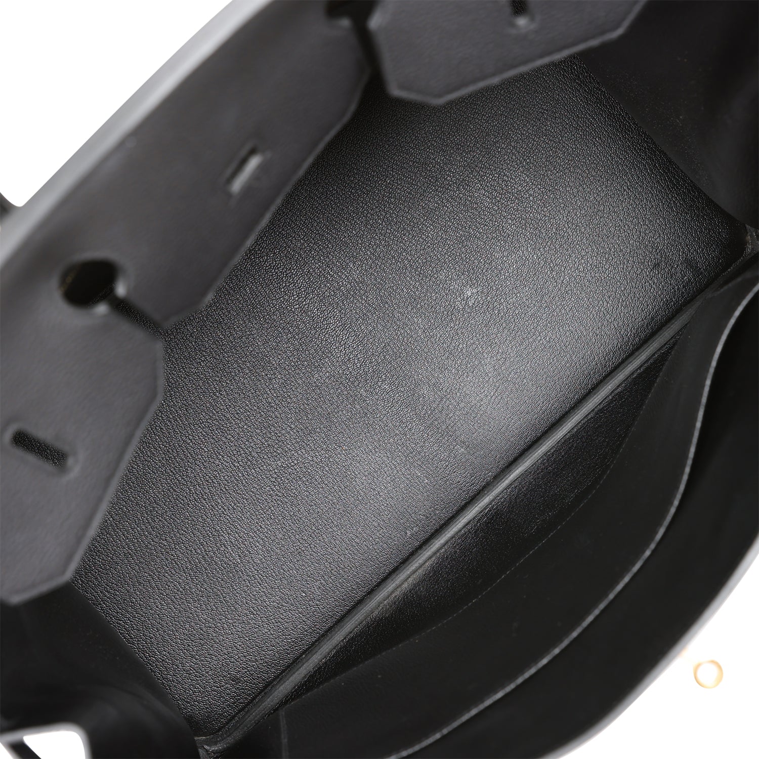 The interior is lined in black chevre with one zip pocket with an Hermes engraved zipper pull and an open pocket on the opposite side.