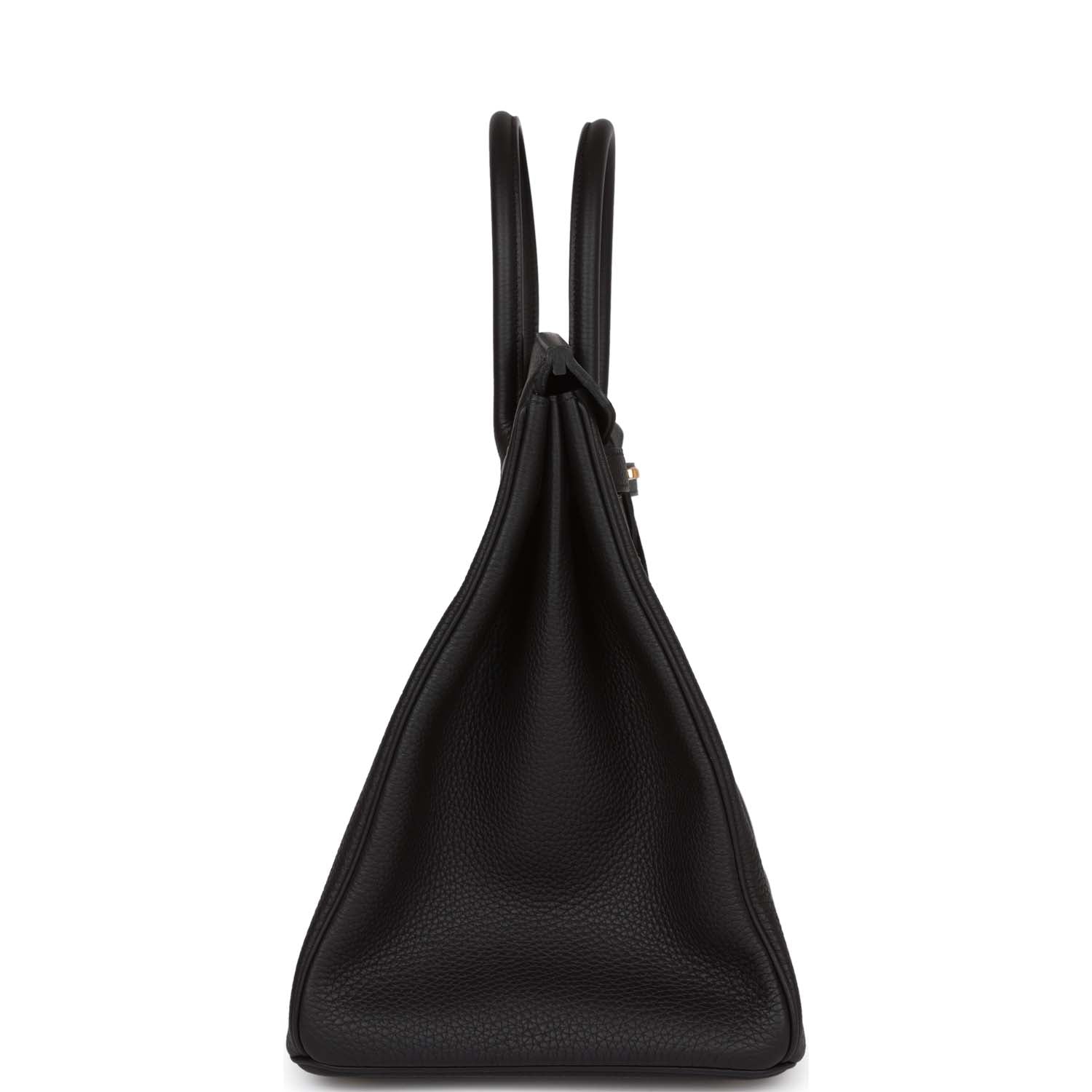 This Birkin is in Black togo leather with gold hardware and has tonal stitching, two straps with front toggle closure, clochette with lock and two keys and double rolled handles.