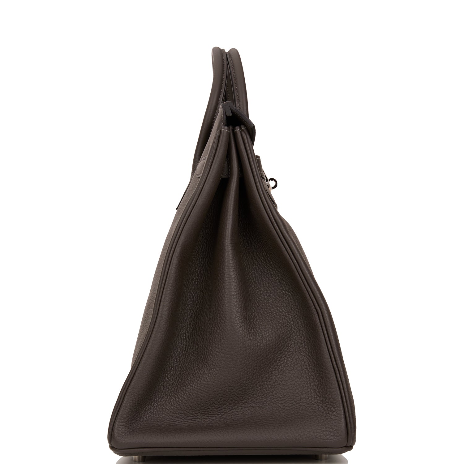 This Birkin is in Graphite togo leather with palladium hardware and has contrast stitching, two straps with front toggle closure, clochette with lock and two keys and double rolled handles.