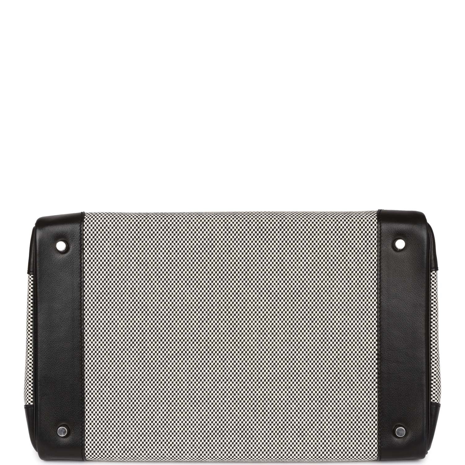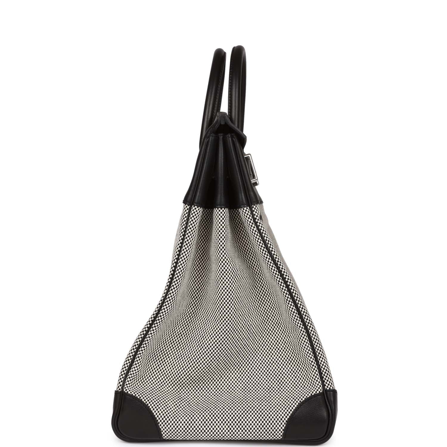 This Hermes Birkin 40 HAC, is in Black evercolor and toile with palladium hardware, tonal stitching, front flap with two straps, front toggle closure, clochette with lock and two keys, and double rolled handles.