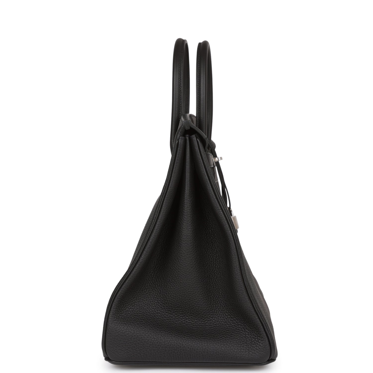 This Birkin is in black togo leather with palladium hardware and has tonal stitching, two straps with front toggle closure, clochette with lock and two keys and double rolled handles.