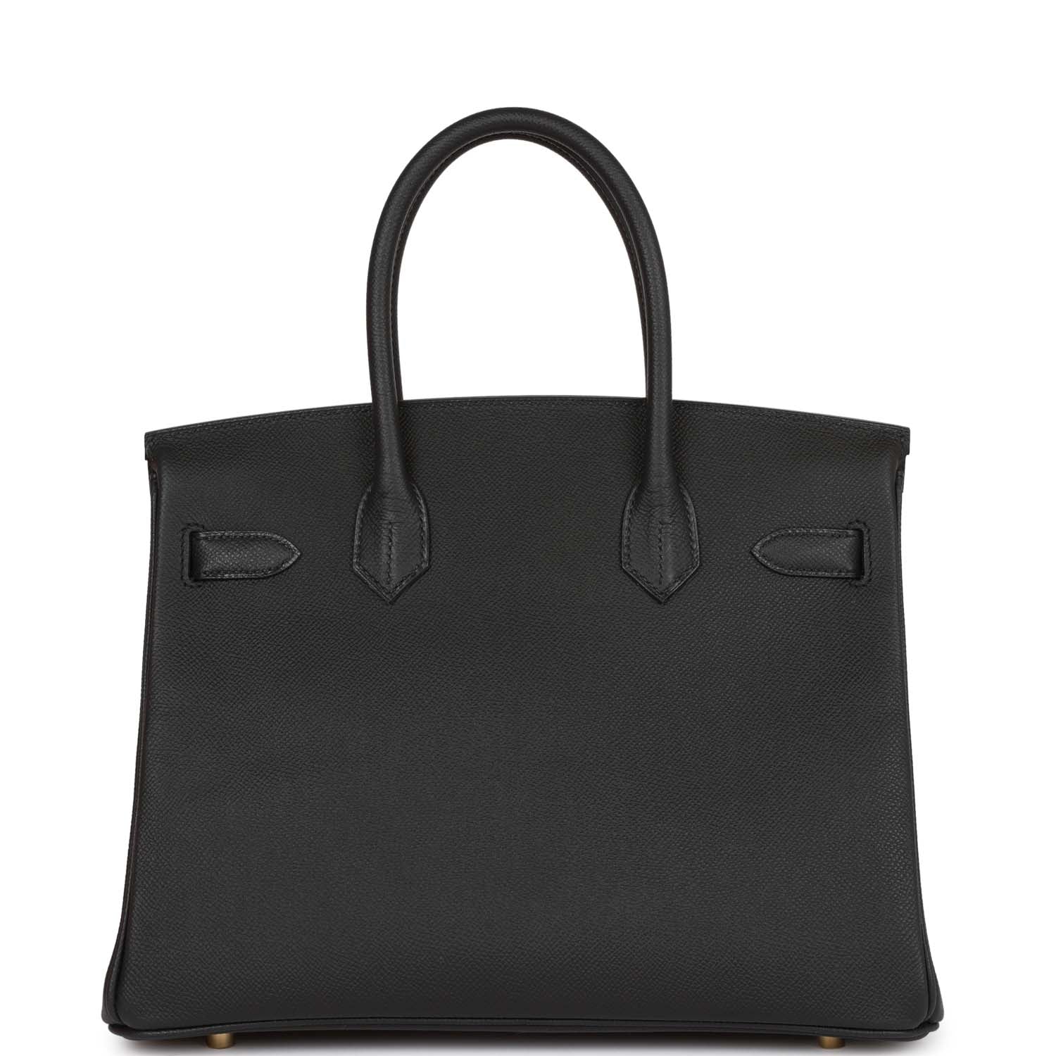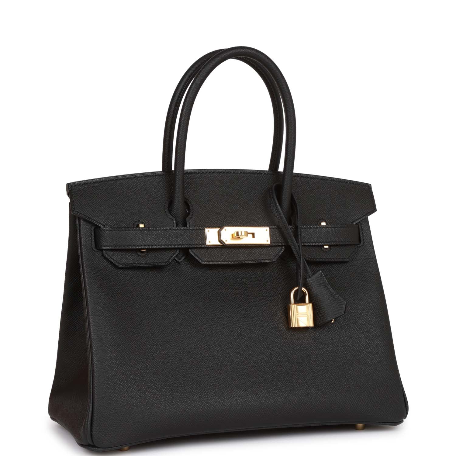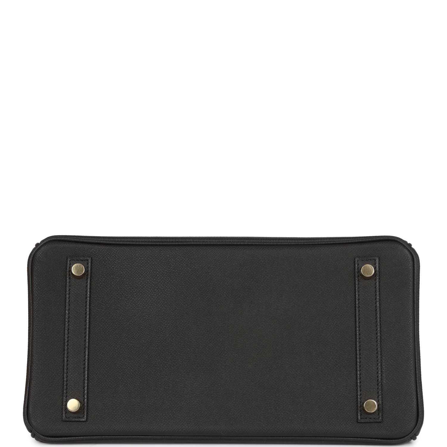 This Birkin is in Black epsom leather with gold hardware and has tonal stitching, front flap, two straps with center toggle closure, clochette with lock and two keys, and double rolled handles.