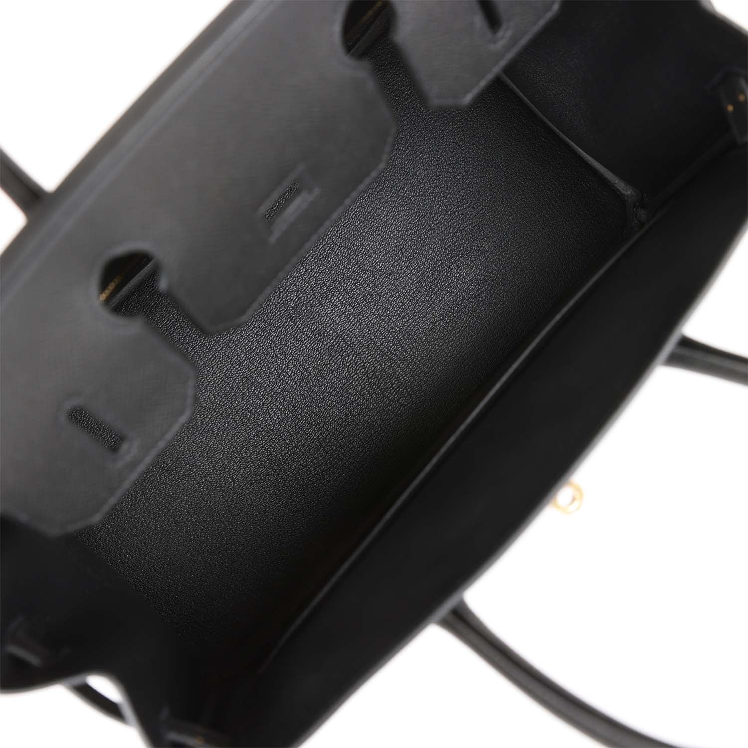 The interior is lined with black chevre and has one zip pocket with an Hermes engraved zipper pull and an open pocket on the opposite side.
