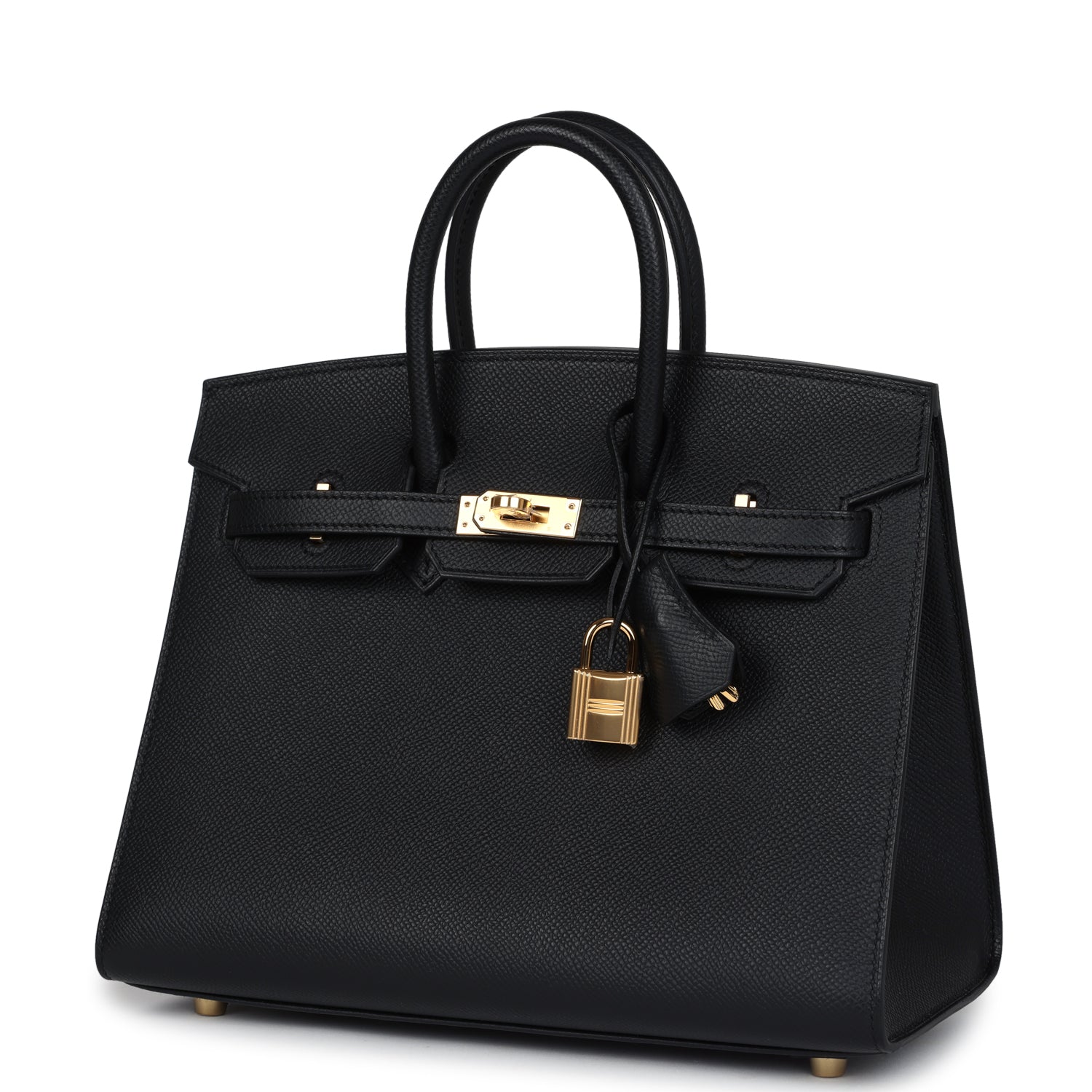 This Birkin is in Black epsom leather with gold hardware, has tonal stitching, front flap, two straps with center toggle closure, clochette with lock and two keys, and double rolled handles.