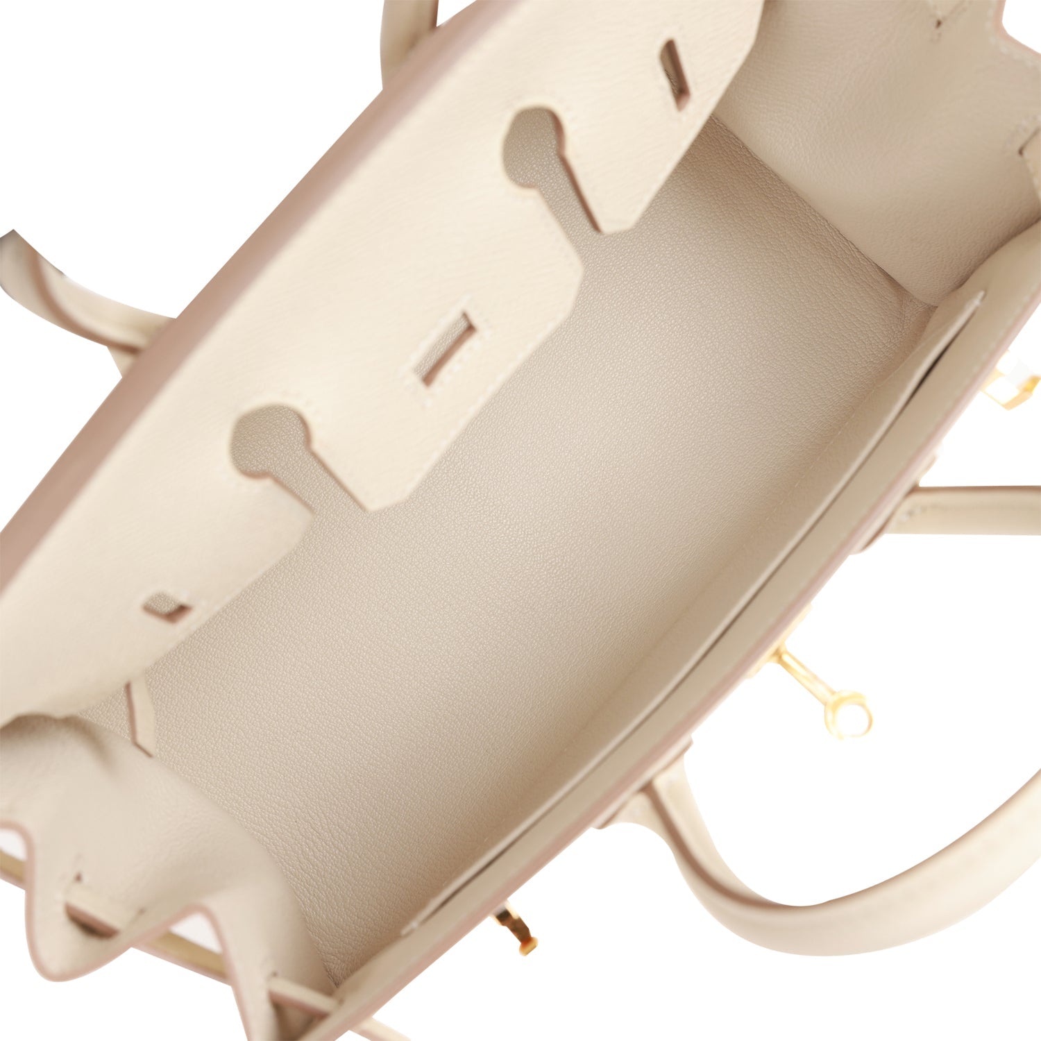This Sellier Birkin is in Craie epsom leather with gold hardware and has tonal stitching, front flap, two straps with center toggle closure, clochette with lock and two keys, and double rolled handles.