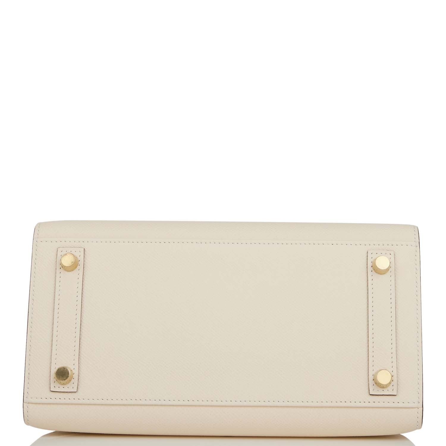 This Sellier Birkin is in Nata epsom leather with gold hardware and has tonal stitching, front flap, two straps with center toggle closure, clochette with lock and two keys, and double rolled handles.