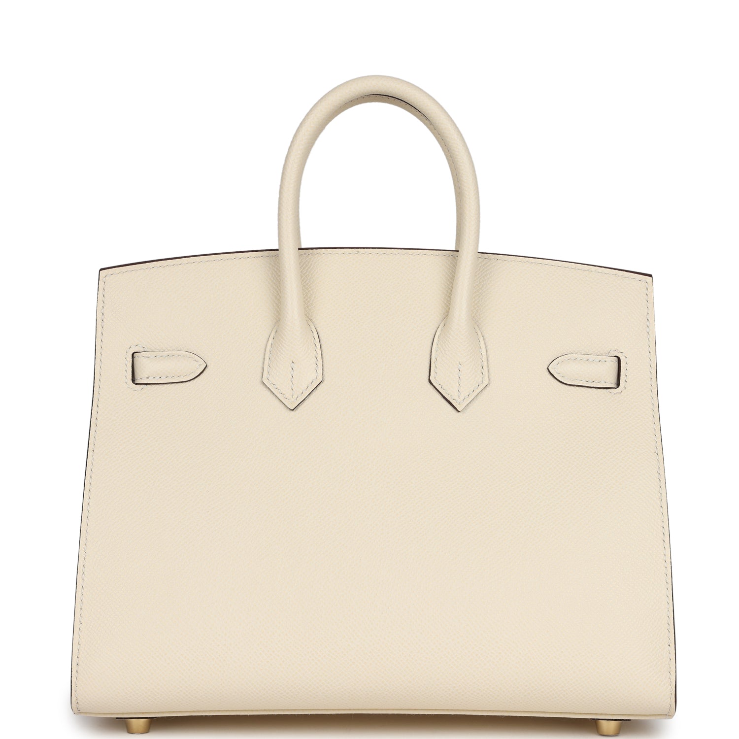 This Birkin is in Nata epsom leather with gold hardware and has tonal stitching, front flap, two straps with center toggle closure, clochette with lock and two keys, and double rolled handles.