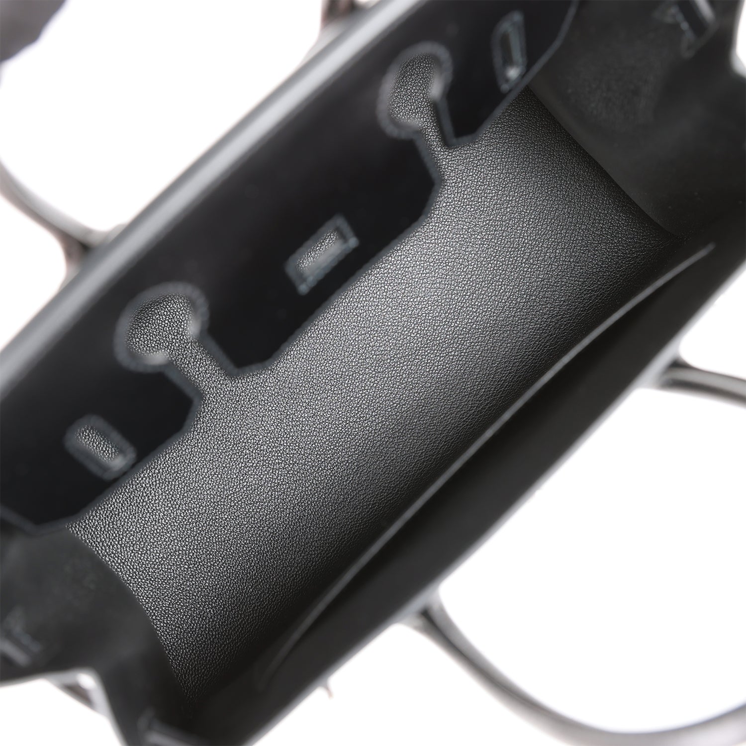 The interior is lined with black chevre and has one zip pocket with an Hermes engraved zipper pull and an open pocket on the opposite side.