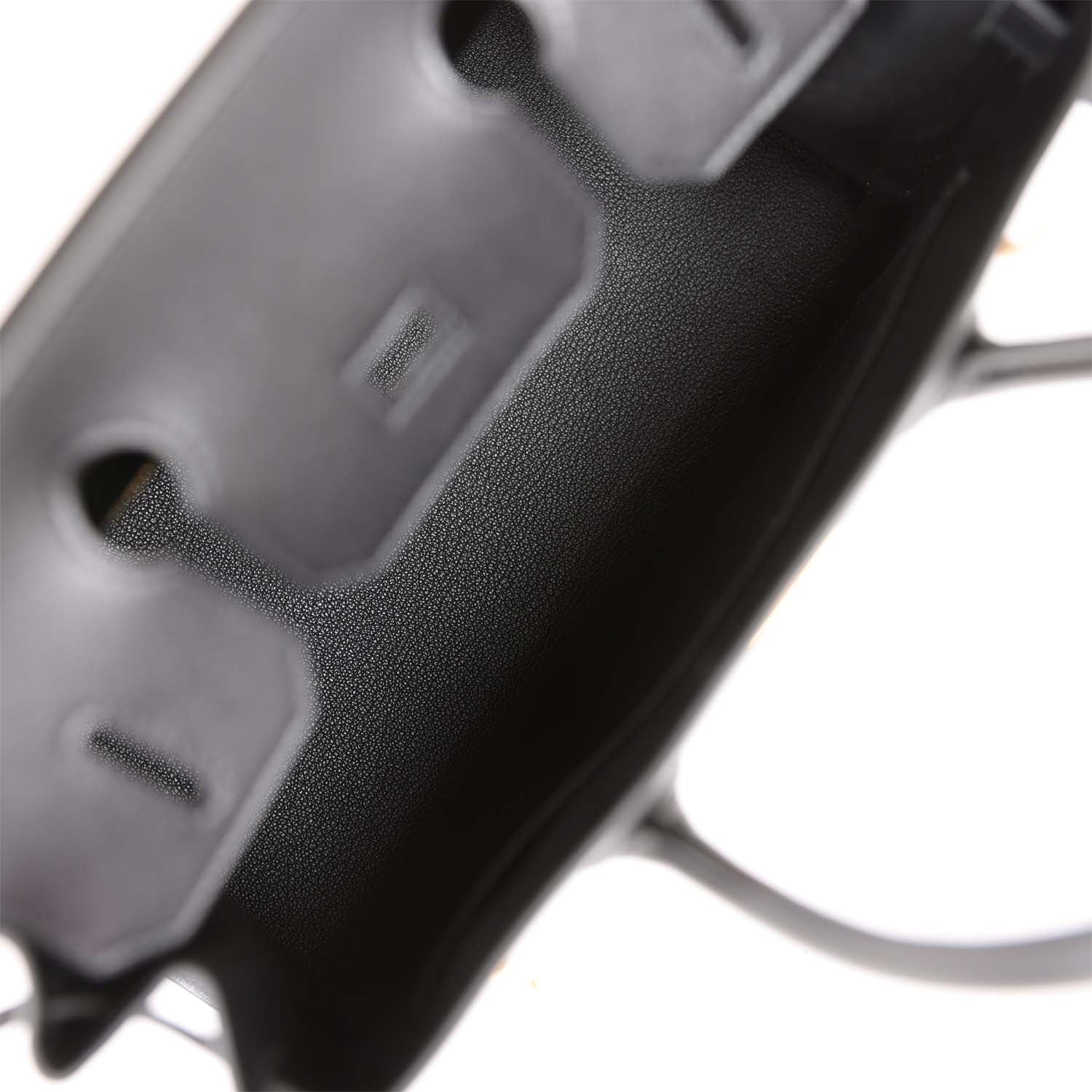 The interior is lined with black chevre and has one zip pocket with an Hermes engraved zipper pull and an open pocket on the opposite side.